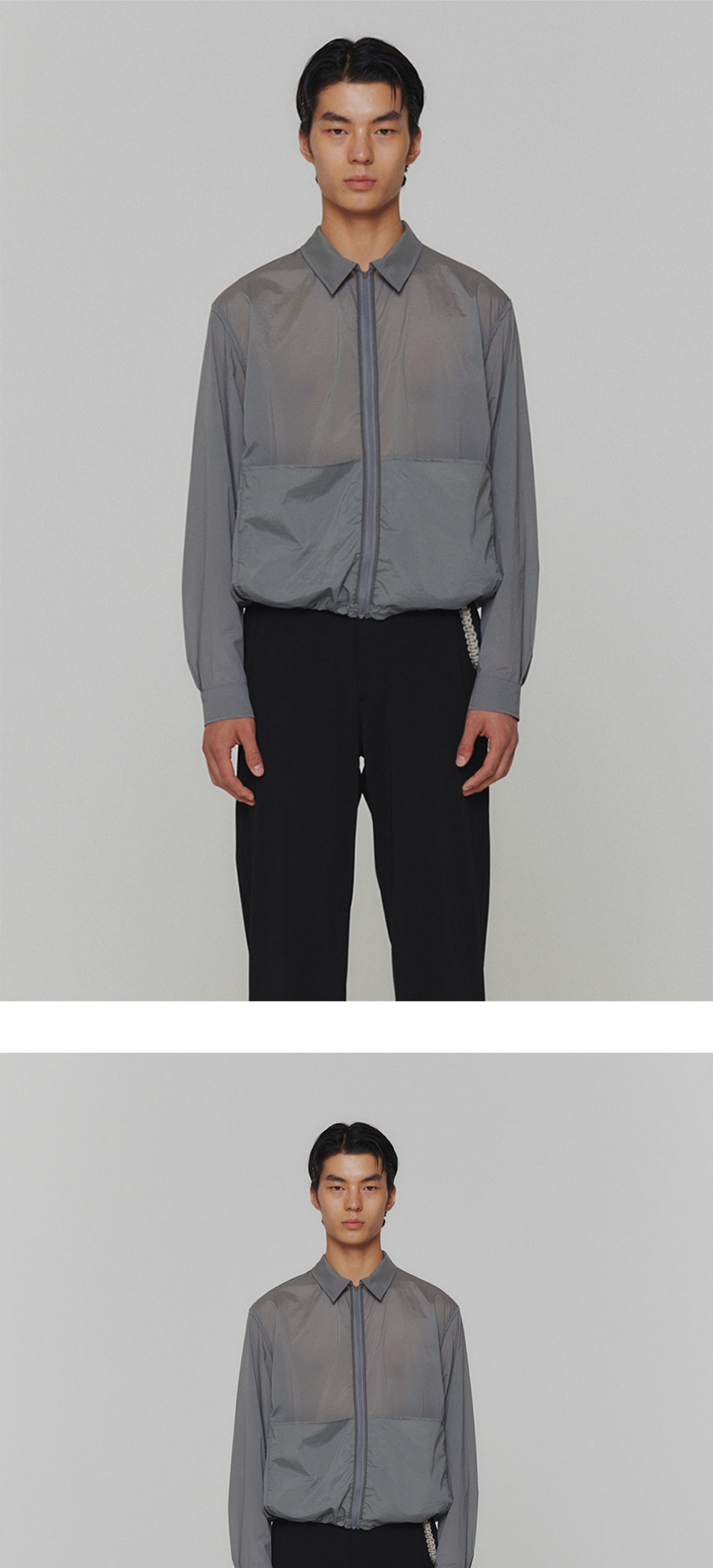 시어한 소재의 라이트 한 집업 셔츠 간절기 바람막이 형식으로 가볍게 착용하기 좋은 집업 셔츠입니다. 리버서블 착용이 가능하며 은은한 비침으로 시어하고 라이트 한 소재감이 돋보이는 아이템입니다. 지퍼 여밈으로 편안한 스타일링이 가능하며, 셔츠형 커프스 버튼 마감으로 미니멀한 무드를 연출할 수 있도록 디자인되었습니다. 매치하는 이너에 따라 다양한 스타일링을 완성시킬 수 있는 매력적인 셔츠형 점퍼입니다. 시어한 소재의 바람막이 리버서블 착용 가능 셔츠형 커프스 버튼 마감 가벼운 착용감 앞중심 지퍼 여밈 *실제 컬러와 디테일은 상세 이미지와 가장 유사합니다. 모델 착용 사이즈 M / 모델 스펙 188cm