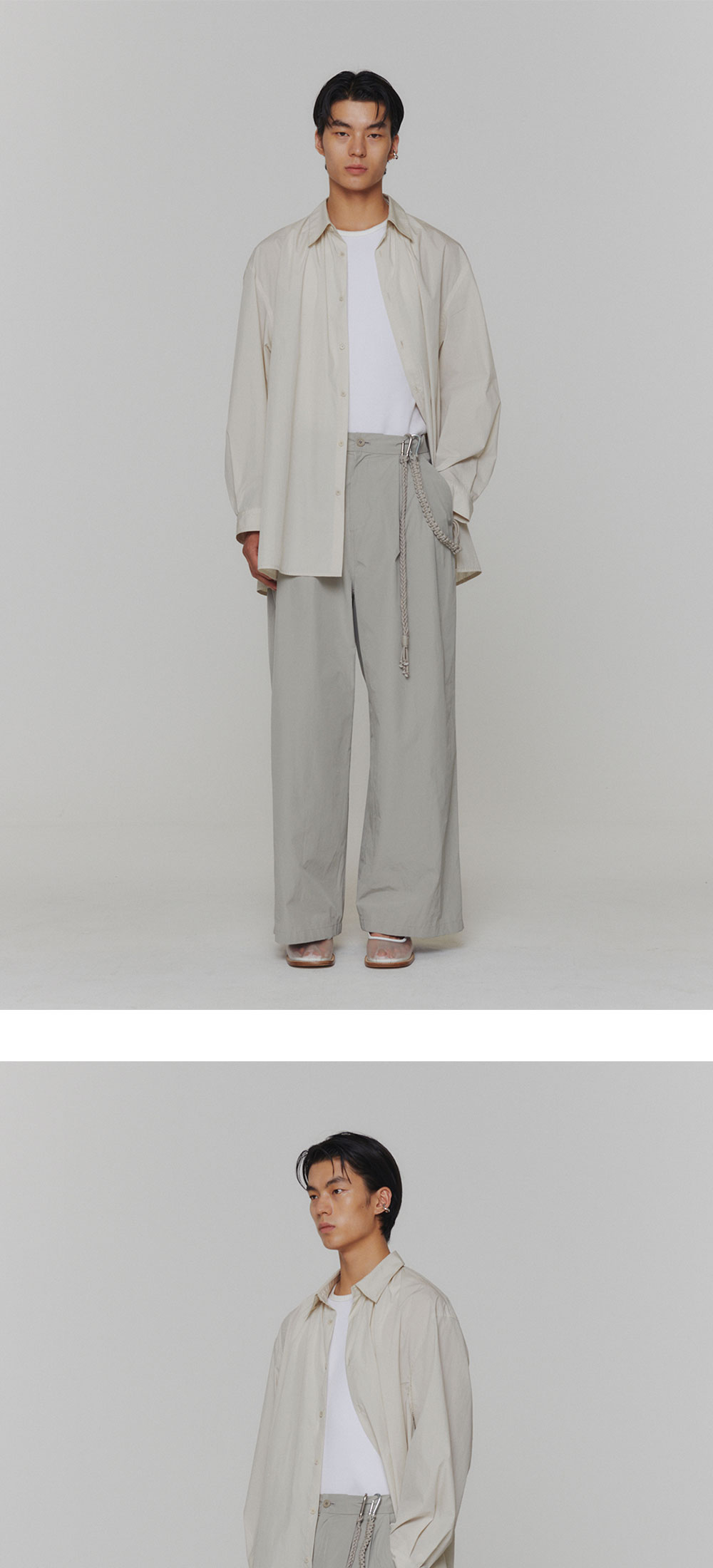 아모멘토 맨즈 투 턱 와이드 팬츠 그레이 베이지