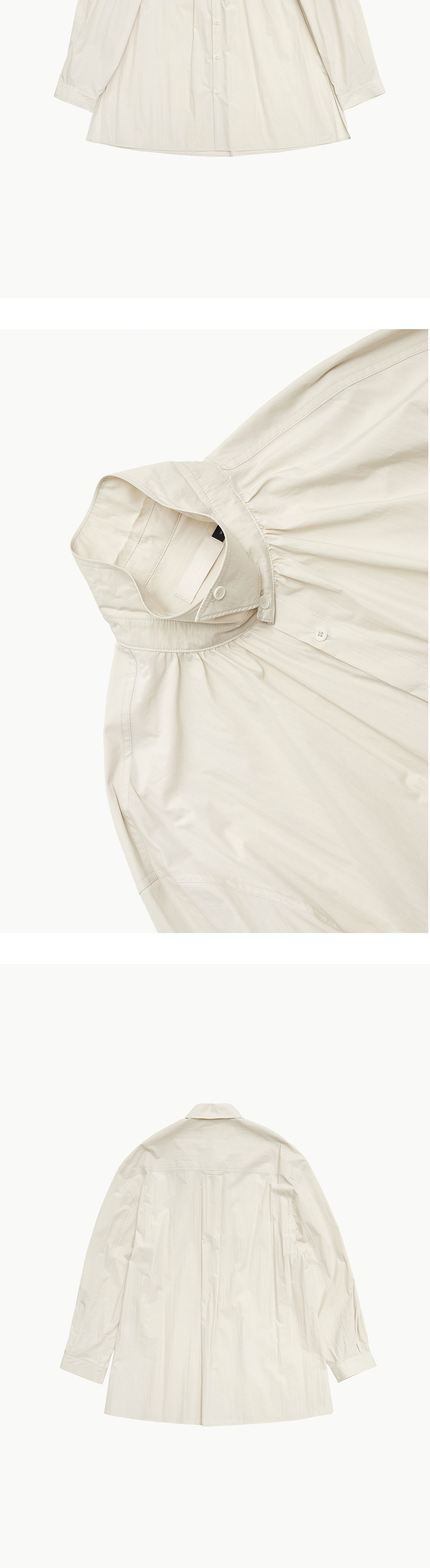셔링 디테일로 오버사이즈 볼륨감이 돋보이는 셔츠 넓은 소매 커프스와 소매 여밈 디테일을 삭제하여 더욱 캐주얼하게 착용할 수 있도록 디자인된 아이템입니다. 카라에 단추와 단추 구멍을 추가하여 하이넥으로도 연출이 가능하며, 카라 밑엔 잔잔한 셔링으로 포인트를 주었습니다. 뒷 판에 넓은 고리로 디테일을 더했으며 몸판의 양쪽엔 트임을 주어 활동성까지 높인 완성도 높은 아이템입니다. 오버사이즈핏 셔링 디테일 넓은 소매 커프스 하이넥 연출 가능 뒤판 고리와 양쪽 트임 *실제 컬러와 디테일은 상세 이미지와 가장 유사합니다. 모델 착용 사이즈 M / 모델 스펙 188cm