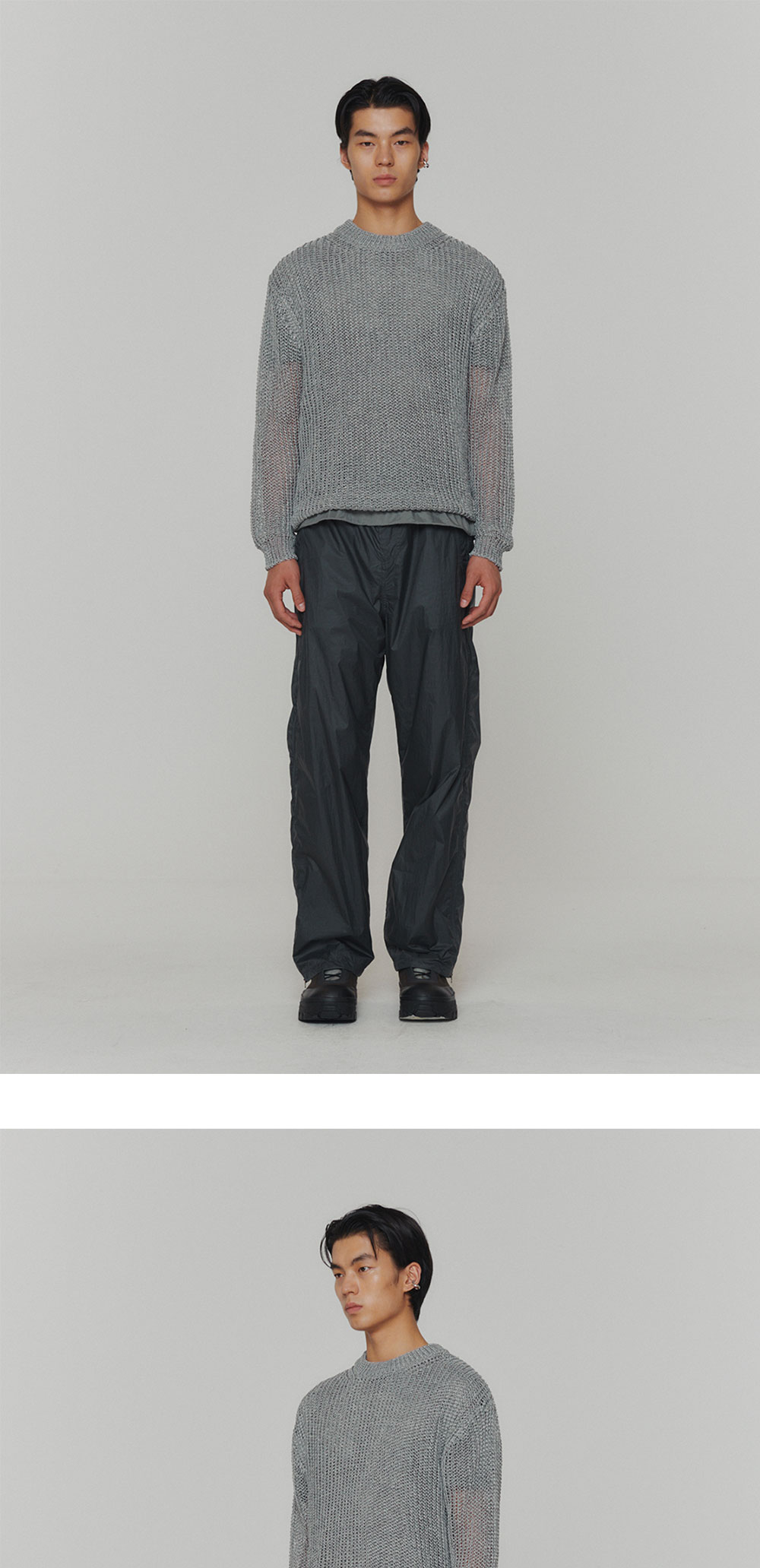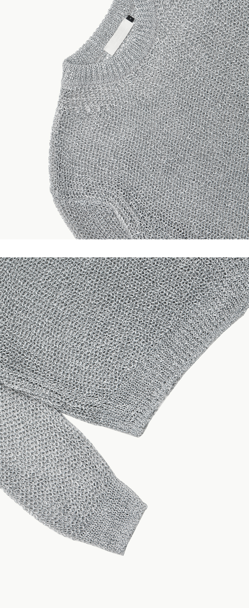 라운드 넥 풀오버. 전체적으로 여유로운 실루엣으로 가볍게 착용 가능하며, 니트 조직을 성글게 편직하여 안쪽에 착용한 옷이 비치는 특징으로 다양한 이너와 레이어드하여 감각적으로 연출이 가능합니다. 밑단과 소매단을 립 마감처리하여 캐주얼한 무드를 더했습니다. 성글게 편직한 원단 은은한 비침 레이어드 스타일링 연출 가능 여유로운 실루엣 자연스러운 립 마감처리 가벼운 착용감 *원사 및 조직 특성상 올뜯김이 발생할 수 있어 착용 시 이 점 유의 부탁드립니다. *올뜯김으로 인한 수선은 불가합니다. *실제 컬러와 디테일은 상세 이미지와 가장 유사합니다.