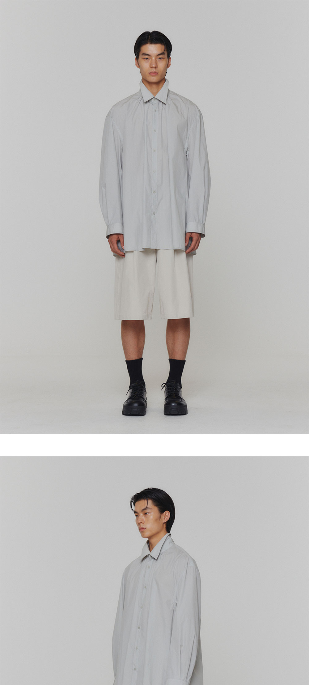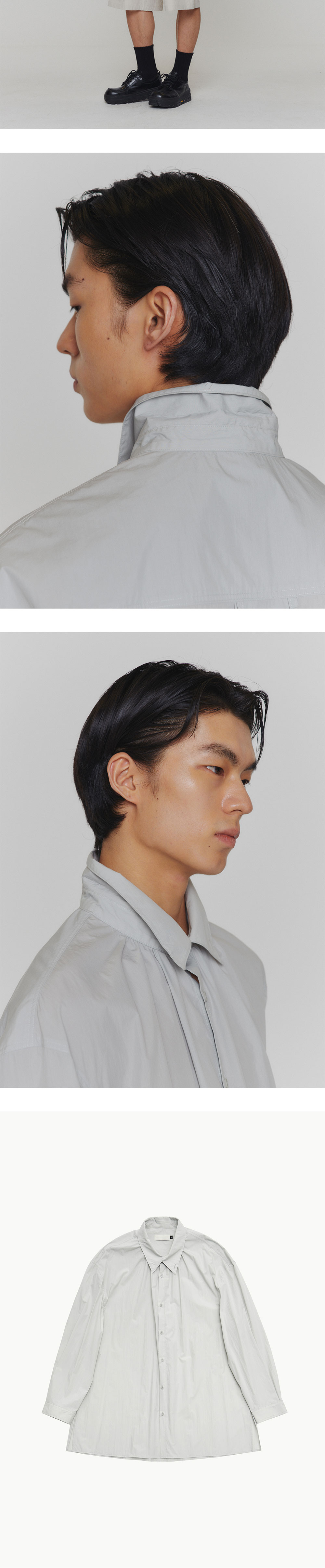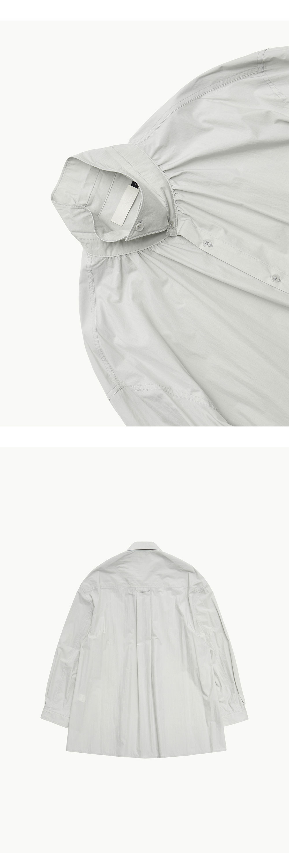 셔링 디테일로 오버사이즈 볼륨감이 돋보이는 셔츠 넓은 소매 커프스와 소매 여밈 디테일을 삭제하여 더욱 캐주얼하게 착용할 수 있도록 디자인된 아이템입니다. 카라에 단추와 단추 구멍을 추가하여 하이넥으로도 연출이 가능하며, 카라 밑엔 잔잔한 셔링으로 포인트를 주었습니다. 뒷 판에 넓은 고리로 디테일을 더했으며 몸판의 양쪽엔 트임을 주어 활동성까지 높인 완성도 높은 아이템입니다. 오버사이즈핏 셔링 디테일 넓은 소매 커프스 하이넥 연출 가능 뒤판 고리와 양쪽 트임 *실제 컬러와 디테일은 상세 이미지와 가장 유사합니다. 모델 착용 사이즈 M / 모델 스펙 188cm