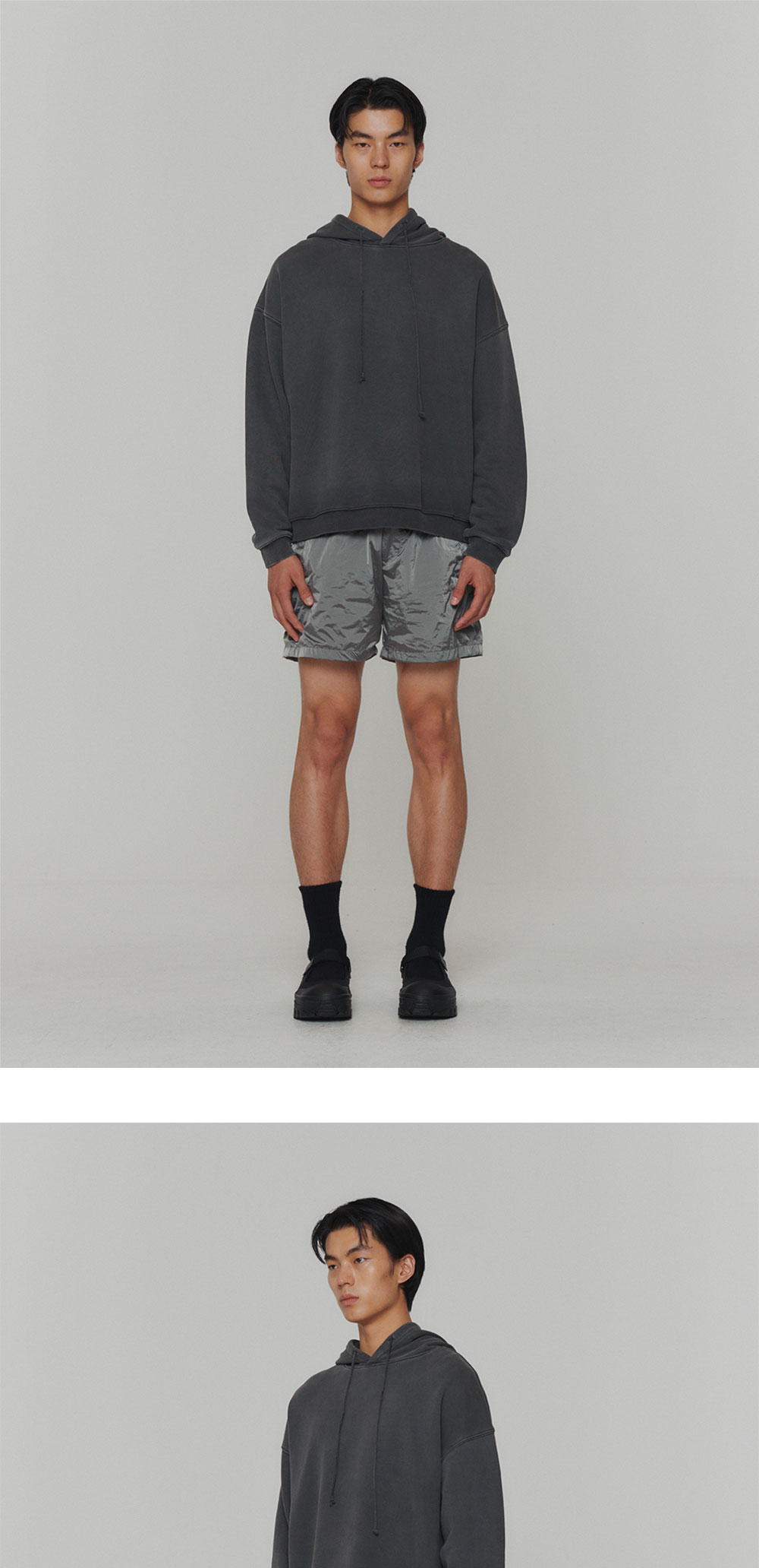 피그먼트 다잉 오버사이즈 후디탑 섬세한 피그먼트 다잉을 통해 자연스러운 컬러를 입힌 오버사이즈 후디탑입니다. 코튼소재로 탄탄한 내구성과 편안한 착용감을 가진 제품이며, 내츄럴한 느낌으로 데일리하게 착용이 가능하면서도, 단조롭지 않은 아웃핏을 완성할 수 있는 베이직아이템입니다. DRAWSTRING DENIM PANTS와 셋업 착용이 가능해 캐주얼한 무드와 활용도를 높였습니다. 오버사이즈 후디탑 피그먼트 다잉 코튼소재 탄탄한 내구성 편안한 착용감 *실제 컬러와 디테일은 상세 이미지와 가장 유사합니다. 모델 착용 사이즈 M / 모델 스펙 188cm
