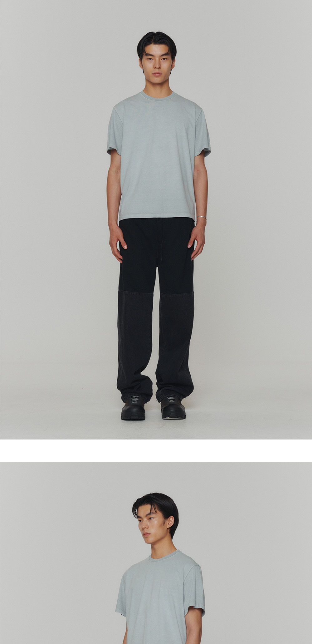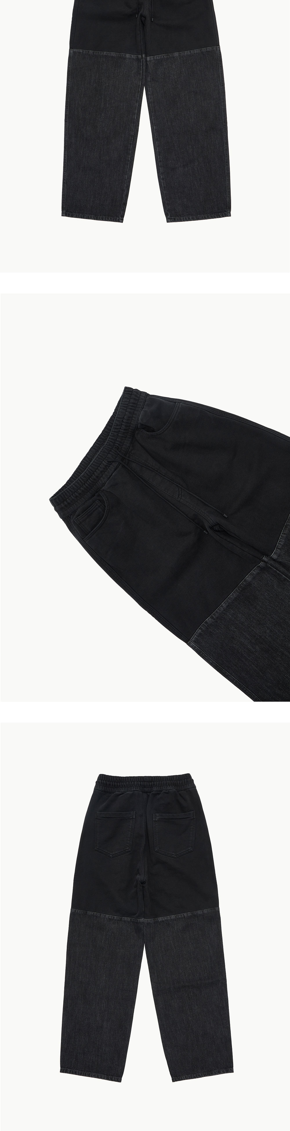 *모델 착용 제품은 동일 상품의 타 컬러입니다. 두께감 있는 코튼 소재와 데님 소재를 배색으로 디자인한 데님 팬츠 친환경적인 가먼트 다잉 염색 기법을 사용해 빈티지하면서도 내추럴한 무드가 돋보이는 아이템입니다. 세미 벌룬핏의 스웻팬츠 디자인으로 감각적이고 유니크한 아웃핏을 만들 수 있습니다. 데님에서 볼 수 없는 5 포켓 디테일을 더한 여유로운 실루엣으로 제작되었으며, 웨이스트 라인의 드로우 스트링을 이용해 사이즈 구애 없이 착용할 수 있습니다. *공정 과정 중 바지 안쪽 주머니 부분을 실리콘 처리로 마감하였으며 이는 불량이 아닙니다. *주머니 혹은 허리밴드 등의 데미지 현상은 소재 특성으로 인한 염색과 워싱 과정에서 생긴 디테일입니다. *기계 세탁 시 올이 튀는 현상이 발생할 수 있으니 단독 손세탁을 권장드립니다. *실제 컬러는 상세 이미지와 가장 유사합니다. 모델 착용 사이즈 M / 모델 스펙 188cm