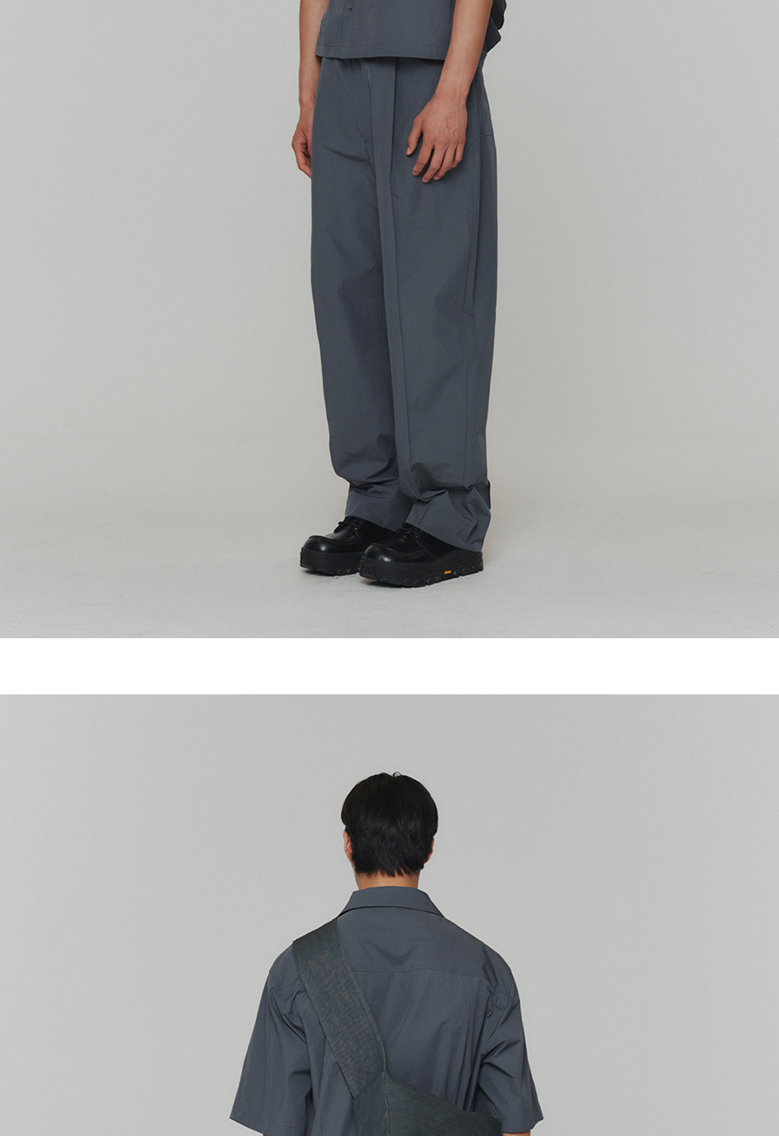 오버사이즈 핏 벨트 턱 팬츠. 앞면과 뒷면의 절개 디테일로 착용 시 구조적인 실루엣을 은은하게 유지하는 매력적인 아이템입니다. 허리 밴딩 처리로 편안한 착용함을 나타내며, 오비 부분에 벨트 장식 디테일을 넣어 베이직한 아이템에 포인트를 주었습니다. 힙에는 사각 포켓 디테일을 넣어 제품의 완성도를 높였습니다. 크리스피한 질감으로 SS 시즌 다양한 룩에 이지하게 활용이 가능한 데일리 팬츠로 추천드립니다. 오버사이즈 핏의 턱팬츠 앞, 뒤 절개 디테일 힙 부분 사각 포켓 오비의 벨트 장식 마감 허리 밴딩 처리 * 상세 이미지 내 상품 컬러의 경우, 동일한 상품의 타 컬러인 점 참고 부탁드립니다.