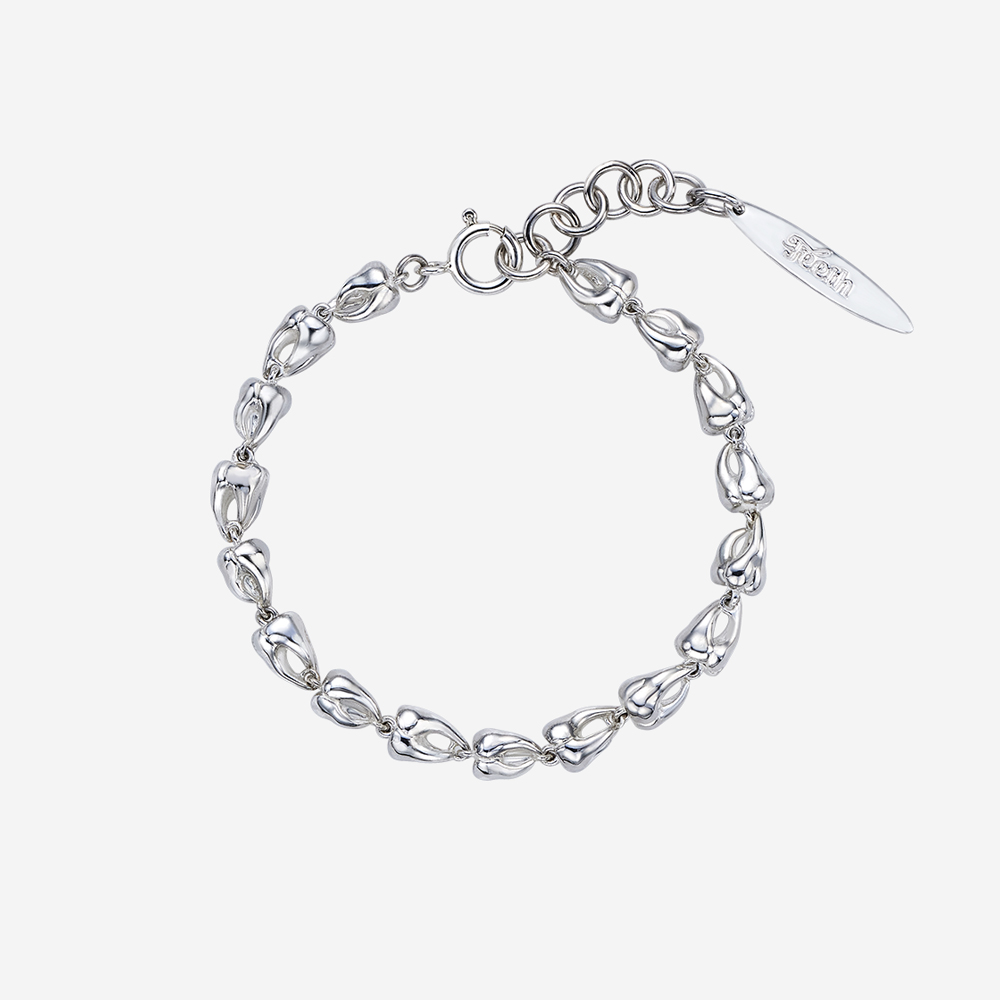 치아 형태의 링크를 연결해 완성한 실버 브레이슬릿입니다.