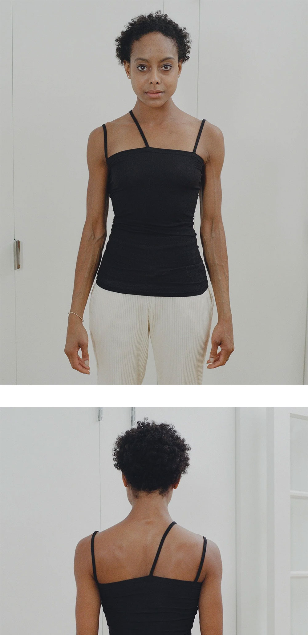 베이스레인지의 니다 탱크는 부드럽고 편안한 식물성 섬유의 코튼립 소재로 제작되었습니다. 양쪽 어깨 뿐만 아니라 가슴 중앙에서 시작하는 스트랩까지 총 3개의 스트랩이 있어 유니크한 이너웨어로 활용할 수 있습니다. - 코튼립 소재의 탱크탑 - 아이코닉한 3개 숄더 스트랩 * 모델 S사이즈 착용