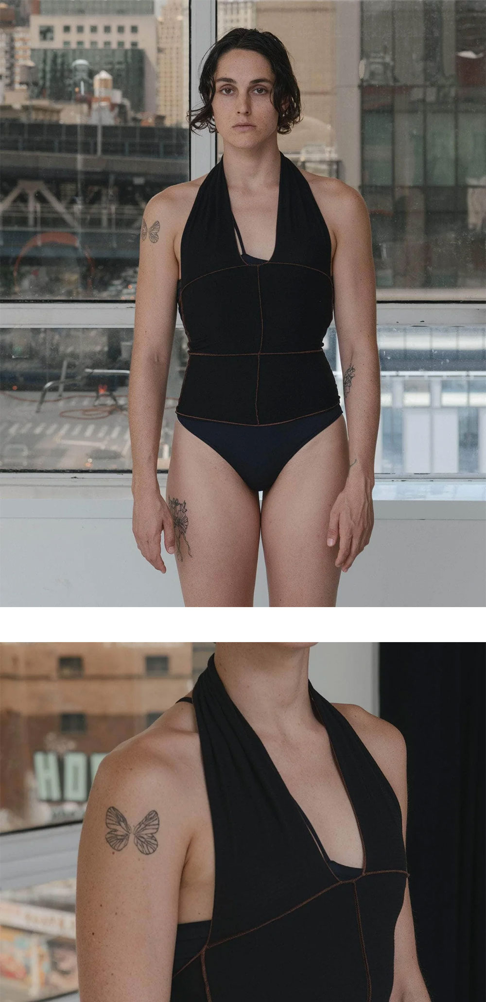 베이스레인지의 인기 아이템 신더 홀터 탑은 아름다운 바디 실루엣을 연출해주는 제품입니다. 부드럽고 편안한 식물성 섬유의 코튼립 소재로 제작되었으며, 24SU 컬렉션 리미티드 컬러로 출시되었습니다. - 24 봄 컬렉션 인기 상품의 여름 한정 컬러 - 코튼립 소재의 슬리브리스탑 - 홀터넥과 오픈백 디자인 - 전면 컬러와는 대비되는 스티치 컬러 - 자연스럽게 주름지는 밑단 * 모델 S사이즈 착용