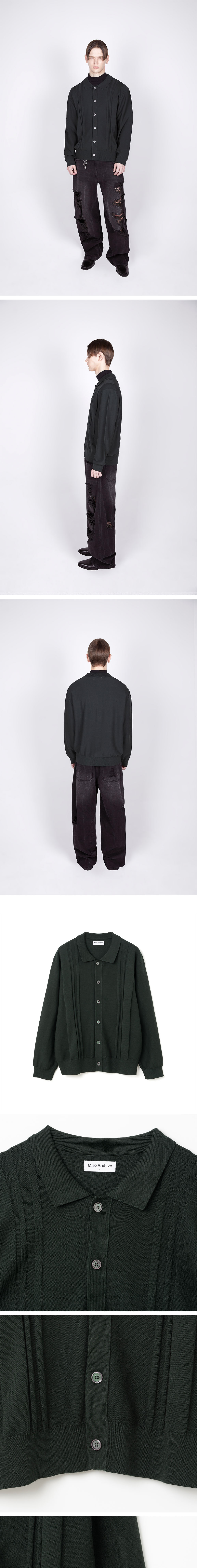 밀로 아카이브 버티컬 스트라이프 가디건 딥 그린
