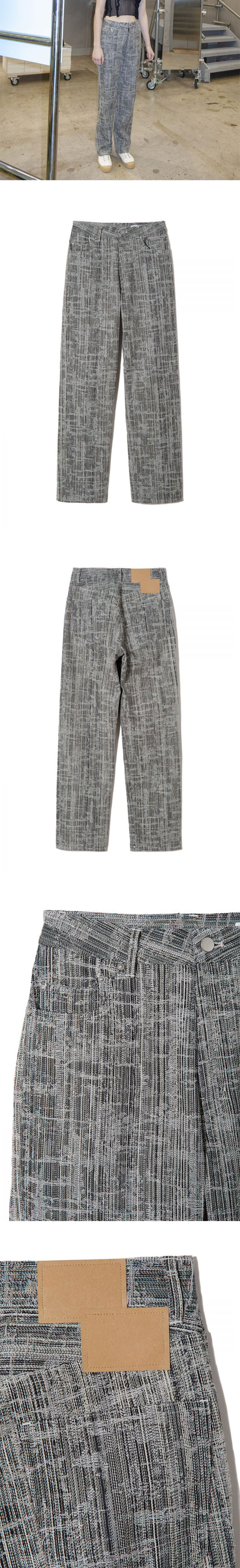 데님처럼 보이는 자카드 원단이 매력적인 퍼버즈의 스크래치드 자카드 팬츠입니다. - 와이드 스트레이트 실루엣 - 오리지널 6-포켓 - 스티치 디테일 * 모델 신체 스펙 : 175cm