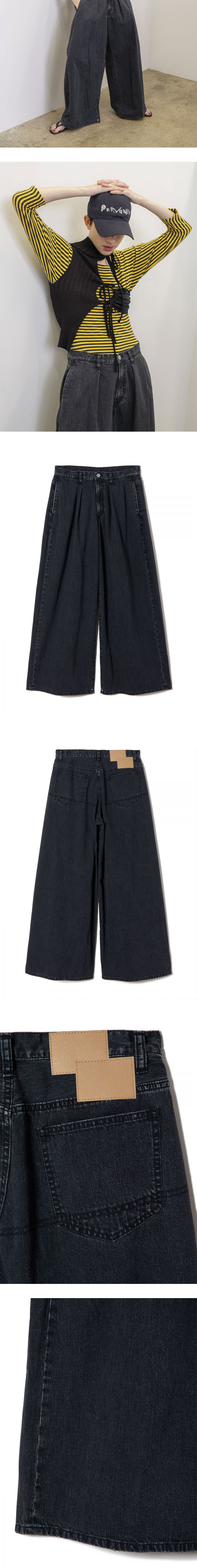 로우 웨이스트로 편안하게 착용이 가능한 퍼버즈의 로우라이즈 와이드 레그 데님입니다. - 원턱 디테일의 와이드 실루엣 - 사이드 포켓 2개와 백 포켓 2개 - 페이디드 및 데미지 디테일 * 모델 신체 스펙 : 173cm