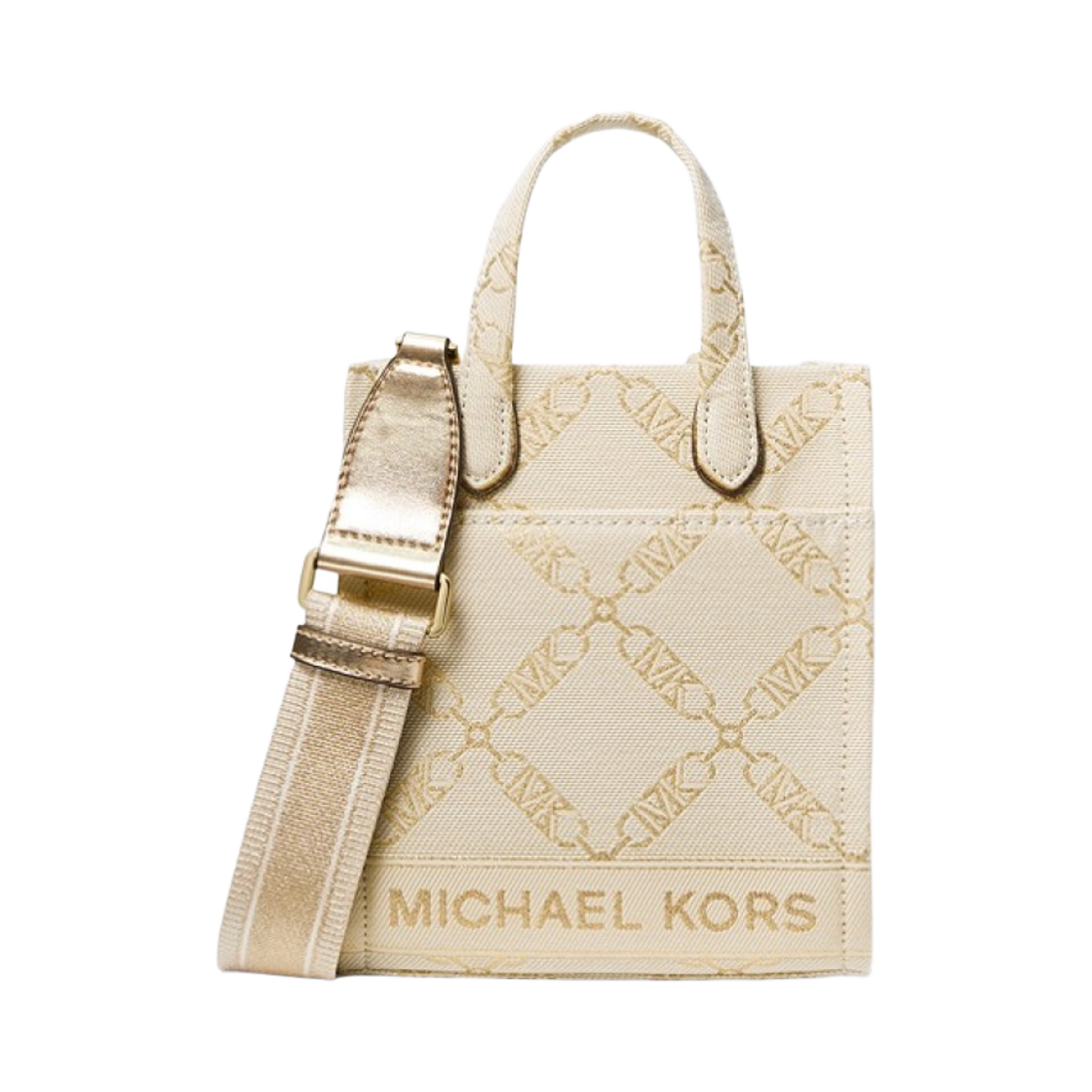 Michael Kors Gigi Extra Small Metallic Empire Logo Jacquard Crossbody Bag Pale Gold Natural