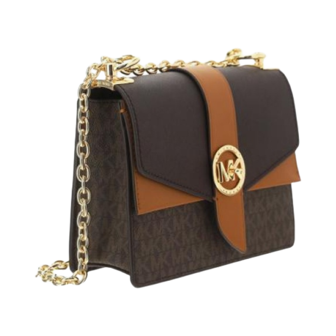 Michael Kors Greenwich Small Color Block Logo Saffiano Leather Crossbody Bag Brown Acorn