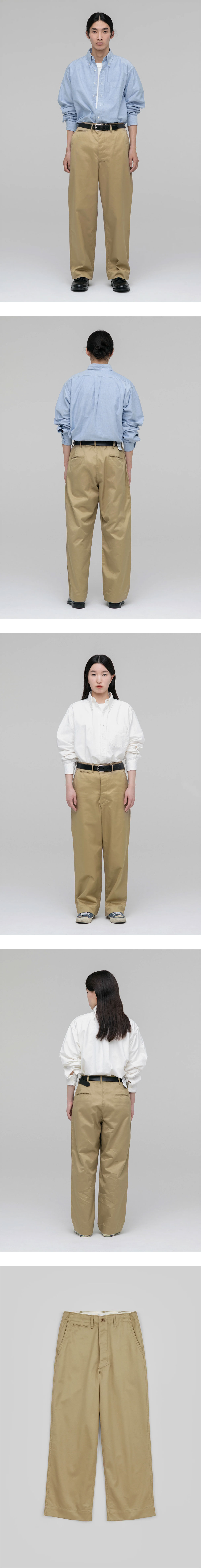 미군의 "41 khaki" 디자인과 사양을 충실하게 재현한 와이드 스트레트 실루엣의 치노 팬츠. 버튼과 플랩, 더블 스티치, 가장자리 포켓 등이 특징입니다. 실의 굵기나 밀도를 면밀히 검토하여 새롭게 개발한 CIOTA 오리지날의 소재는 터프한 질감과 부드러운 촉감, 고급스러운 광택과 탄력을 동시에 실현해 줍니다.