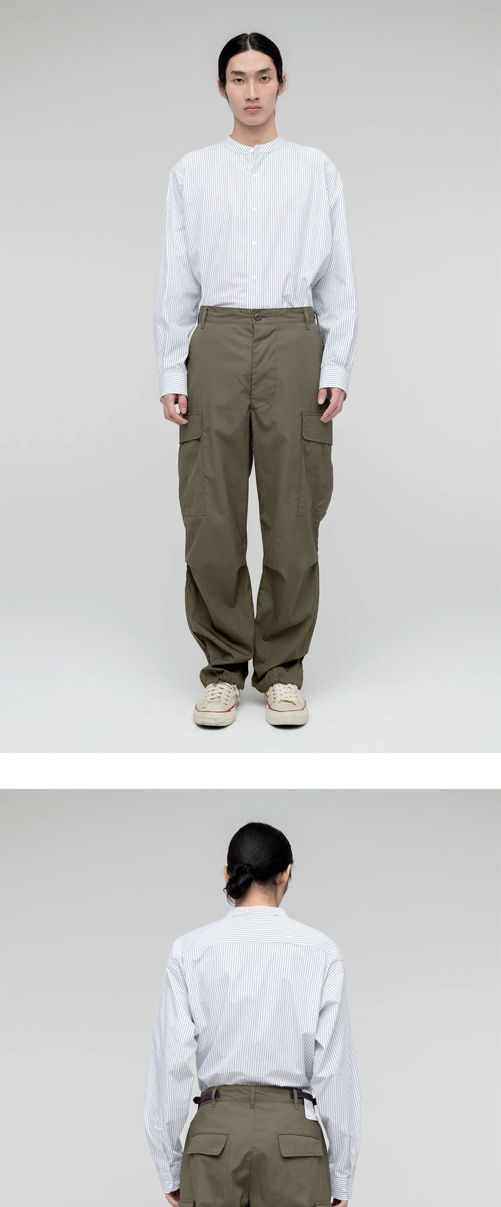US Army의 Jungle Fatigue Pants 3rd 타입을 모티브로 하여 시오타만의 재해석을 담은 퍼티그 팬츠입니다. - 스트레이트 실루엣 - 밑단의 드로우스트링을 활용하여 테이퍼드 실루엣으로 연출 - 시오타만의 수빈 코튼 소재로 제작되어 부드러운 촉감 | 사이즈 가이드 | - 모델: 178cm - 착용 사이즈: 5