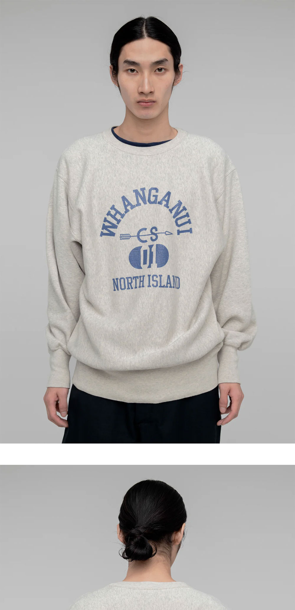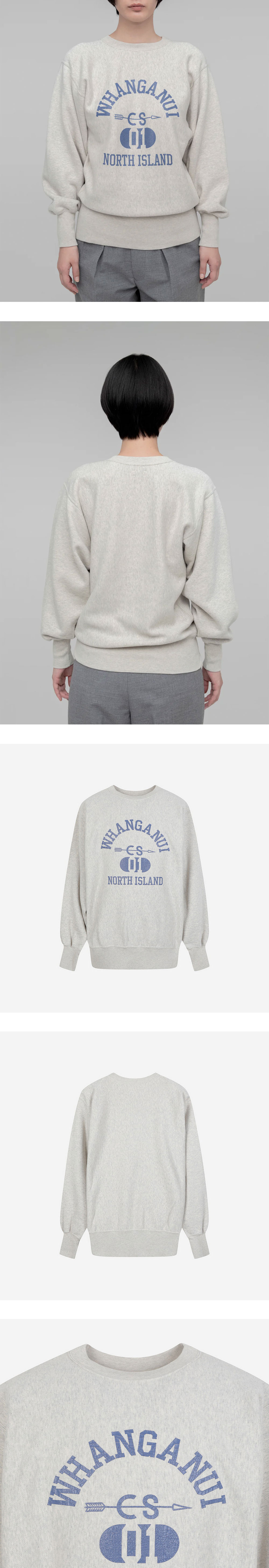 시오타 크루넥 프린티드 스웻셔츠 라이트 탑 그레이