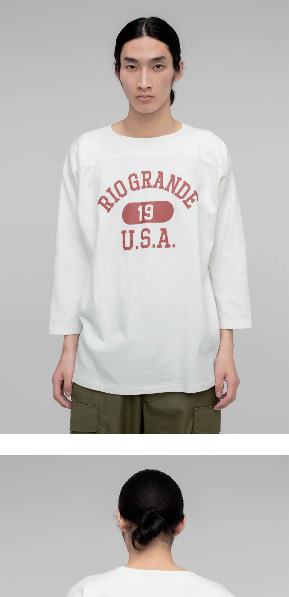 희귀한 수피마 면으로 제작된 풋볼 티셔츠입니다. 디자인은 1970년대 빈티지를 샘플링하였습니다. - 자연스러운 느낌을 유지한 카드 실 사용 - 12수의 두께 - 스비 코튼의 부드러운 터치 * 모델 신체 스펙 M: 178cm - 착용 사이즈 5 / W: 168cm - 착용 사이즈 3