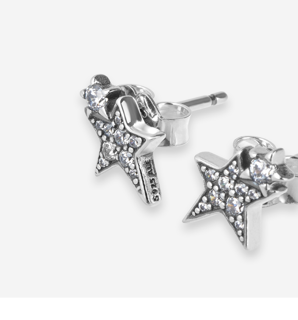 (W) 판도라 스파클링 어시메트릭 스타 스터드 이어링 스털링 실버 클리어