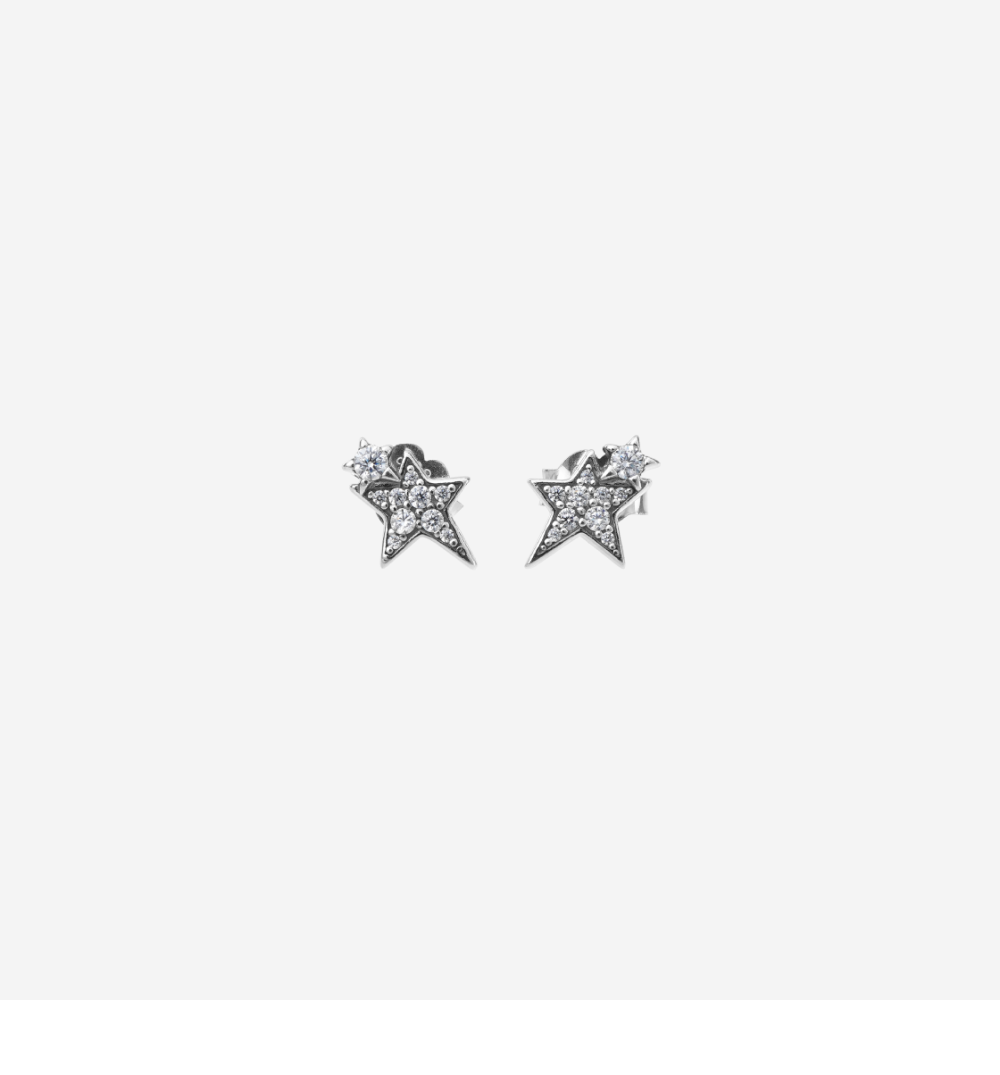 (W) Pandora Sparkling Asymmetric Stars Stud Earrings Sterling Silver Clear
