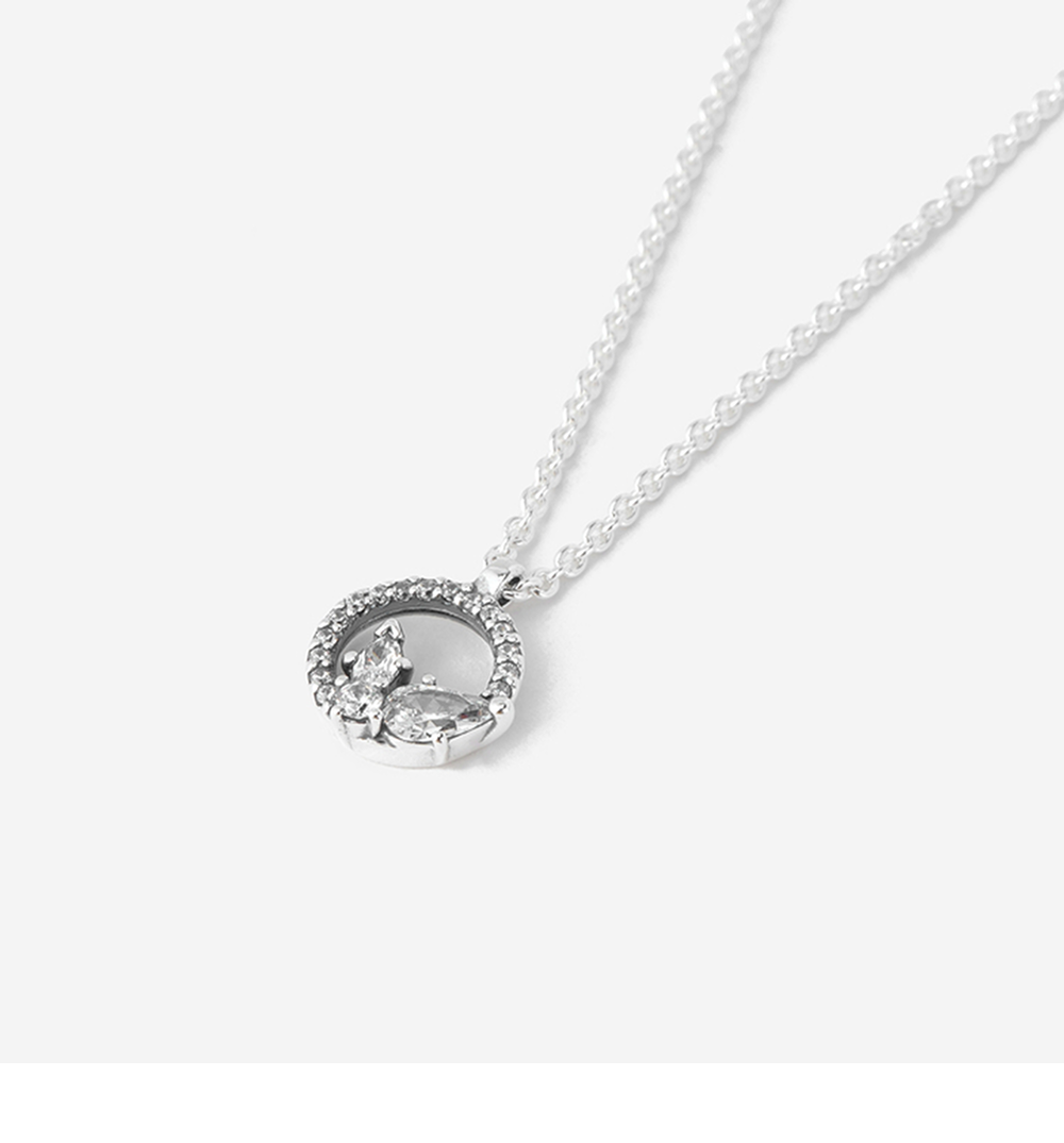 (W) 판도라 스파클링 허바리움 서클 & 클러스터 펜던트 네클리스 스털링 실버 클리어