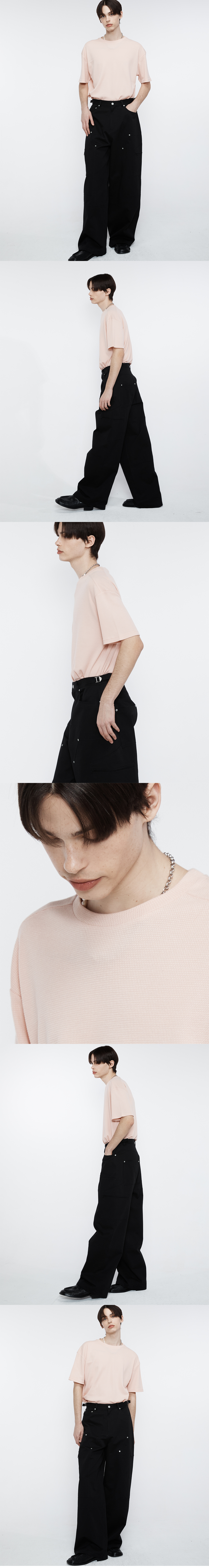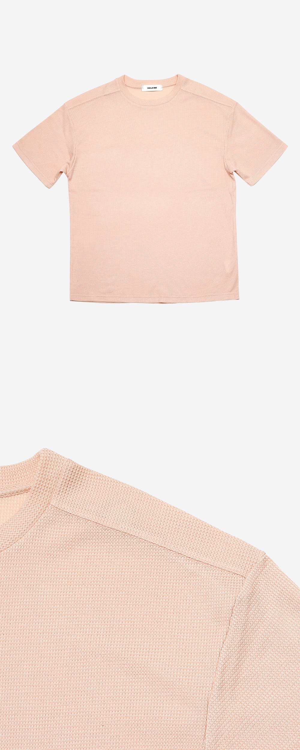 부드러운 와플 조직감 원단으로 제작된 스탠다드한 실루엣의 하프 레글런 디테일의 티셔츠입니다. 신축성이 좋고 터치감이 부드러운 소재로 착용감이 우수하며, 어깨선을 하프 레글런으로 디자인하여 입체적인 포인트를 주었습니다. 단품 및 이너로 모두 활용도가 높은 아이템입니다.