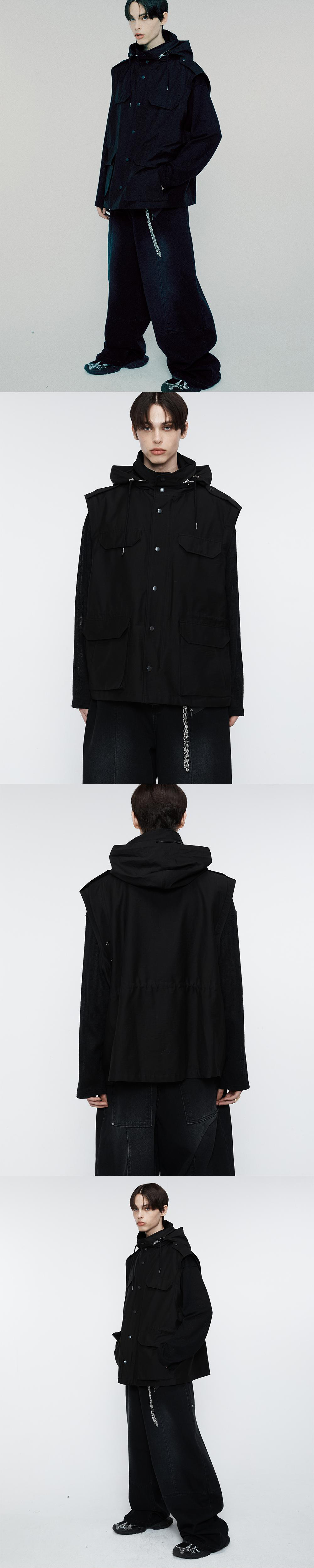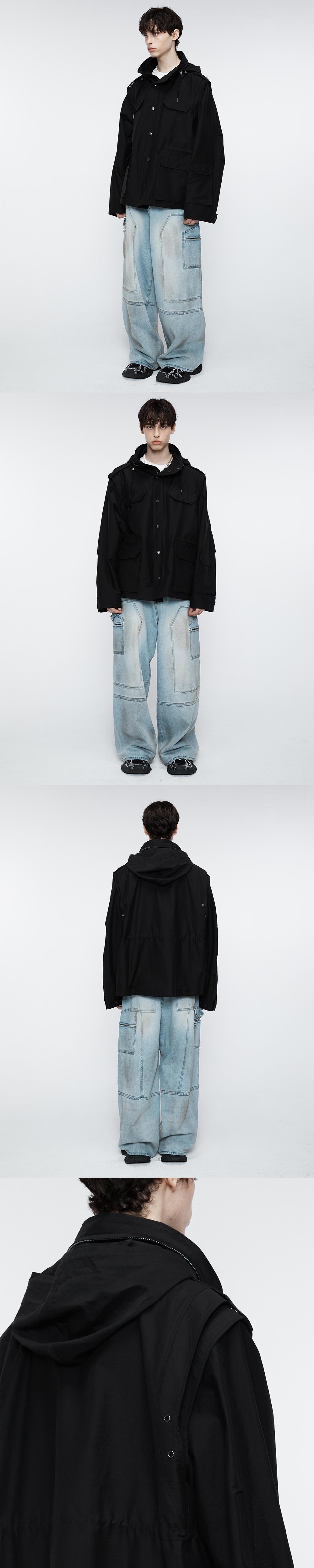 은은한 광택감을 가진 독특한 조직감의 면 혼방 소재를 사용하여 재해석한 M65 밀리터리 파카입니다. 후디드 디자인을 차용하여 캐주얼한 연출 또한 가능하며, 다양한 유틸리티 포켓 디테일들이 전체적인 구조감을 완성시켜줍니다. 미드 기장의 넉넉한 실루엣으로 편안하면서도 여러가지 스타일리쉬한 연출이 가능한 제품입니다. -DETAIL- 소매 탈부착 가능 히든 후디드 디테일 등판 액션 플리츠 및 아일렛 디테일 내부 스트링을 통한 사이즈 조절 소매 다트 디테일 입체 포켓 디테일