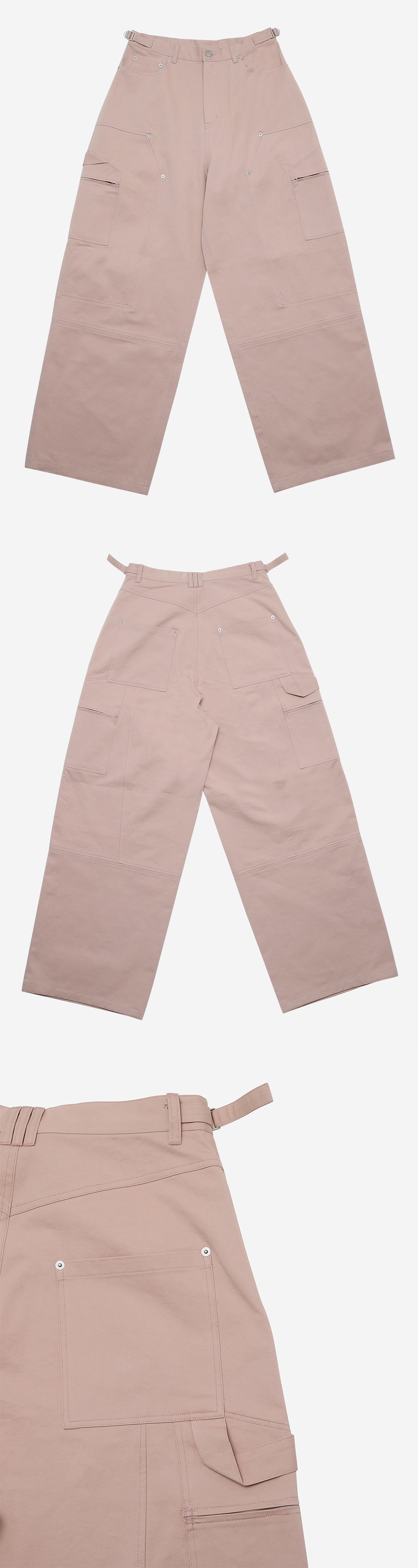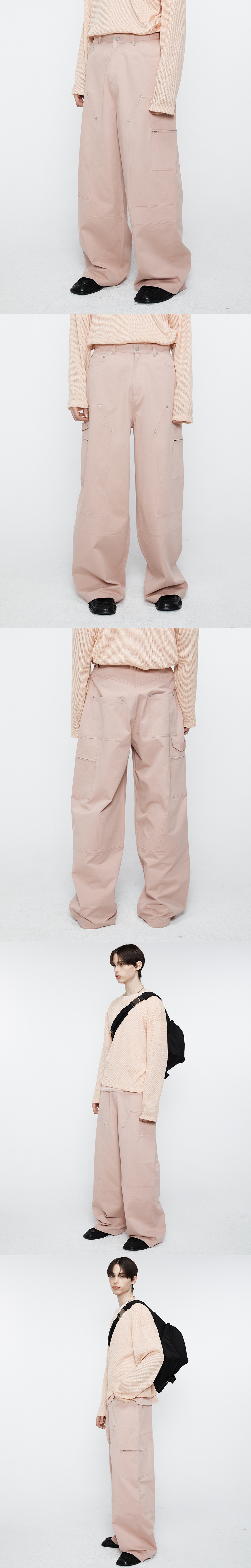 카고 팬츠와 카펜더 팬츠의 디테일을 믹스하여 유니크한 디자인으로 재해석한 코튼 팬츠입니다. 바이오 워싱을 거친 트윌 코튼 소재를 사용하여 부드러운 터치감과 캐주얼한 무드를 연출합니다. 와이드 한 실루엣으로 편하게 포인트로 스타일링하기 좋은 제품입니다. -DETAIL- 카고 포켓이 추가된 카펜터 절개 허리 양 사이드 조절이 가능한 벨티드 디테일 입체적으로 설계한 절개 라인 리벳 디테일