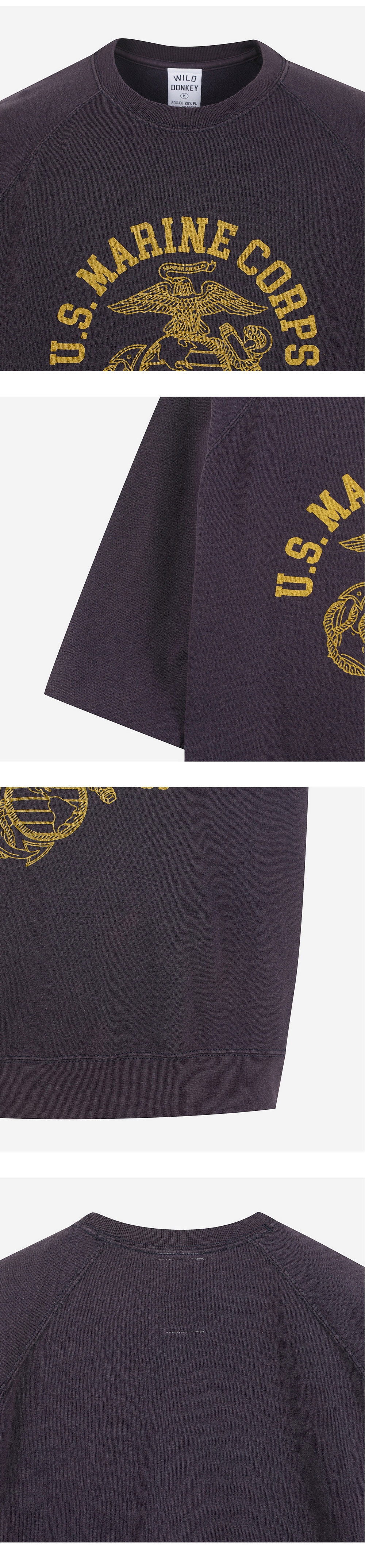 빈티지한 무드의 그래픽이 돋보이는 와일드 동키의 마린 스웨트셔츠입니다. - 바랜 듯한 텍스처의 빈티지 프린팅 디테일 - 숏슬리브 스웨트셔츠 스타일 * 모델 신체 스펙 - 185cm / 착용 사이즈 - L