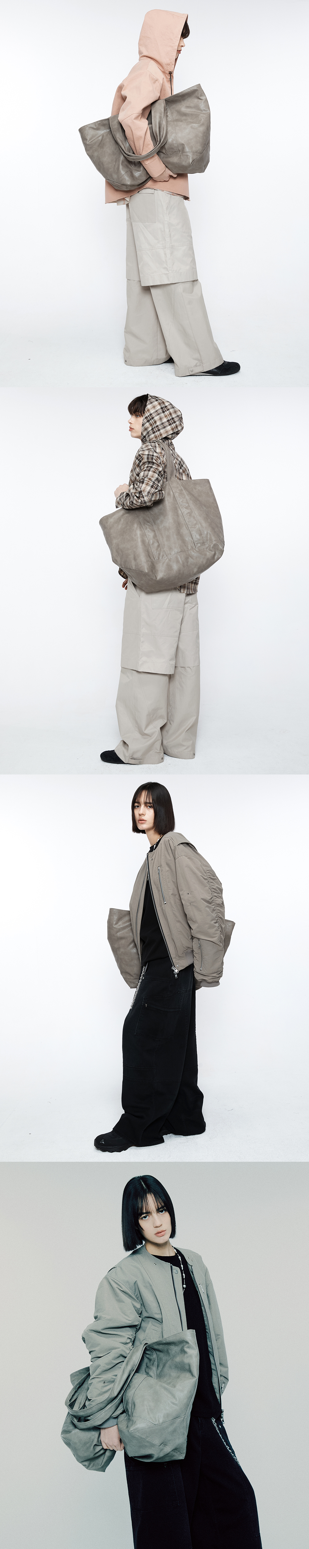 도톰하고 부드러운 텍스쳐감의 크랙 타입 인조가죽으로 제작된 빅사이즈 토트백입니다. 빅 사이즈를 통해 여러가지 연출이 가능하며, 수납공간 또한 넉넉하여 실용성도 갖춘 제품입니다. -DETAIL- 하단부 삼각 입체 절개 내부 지퍼 포켓