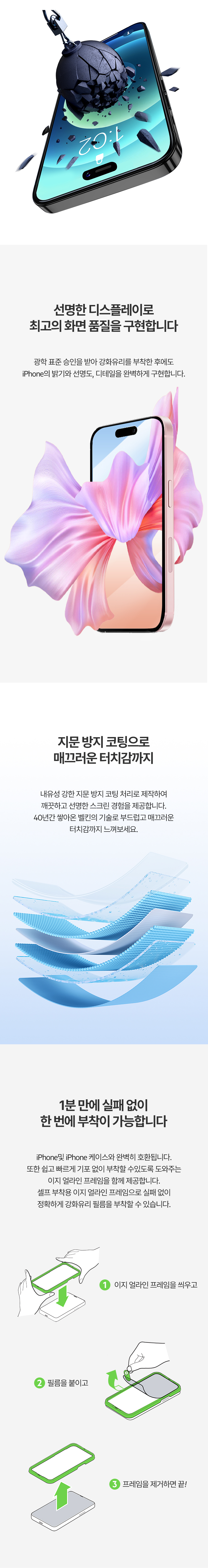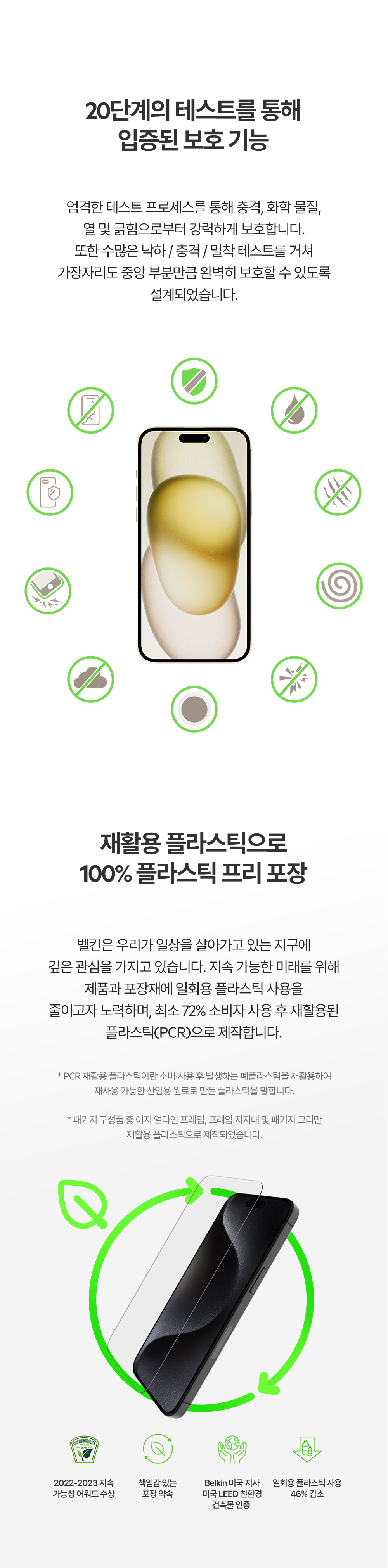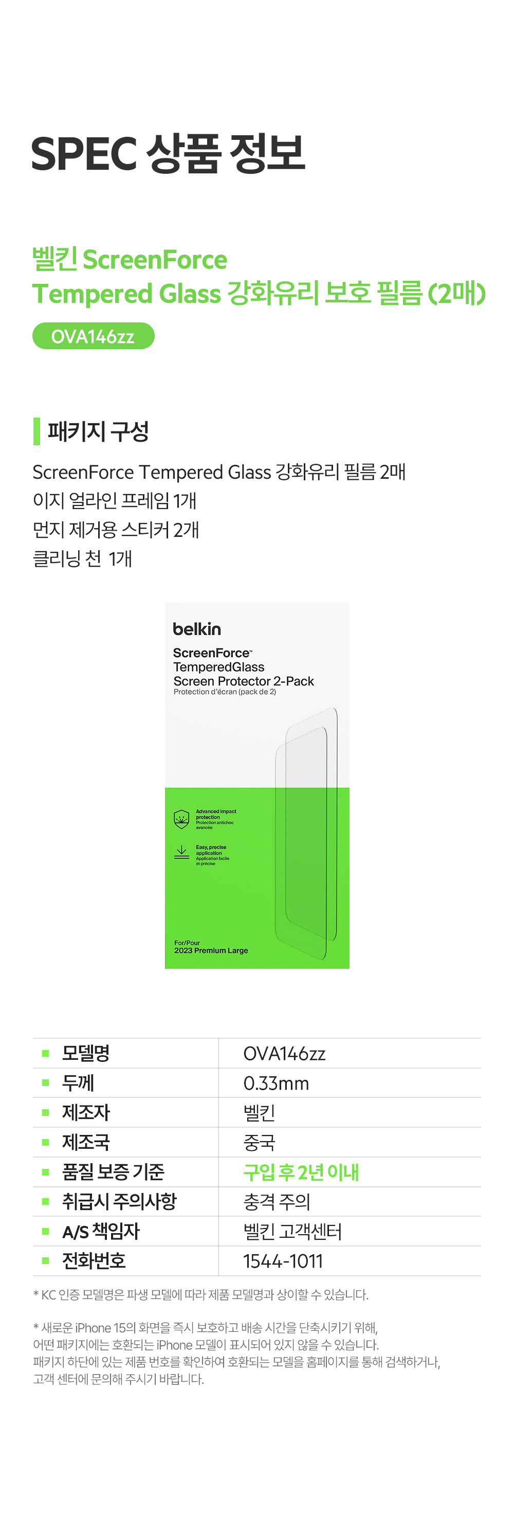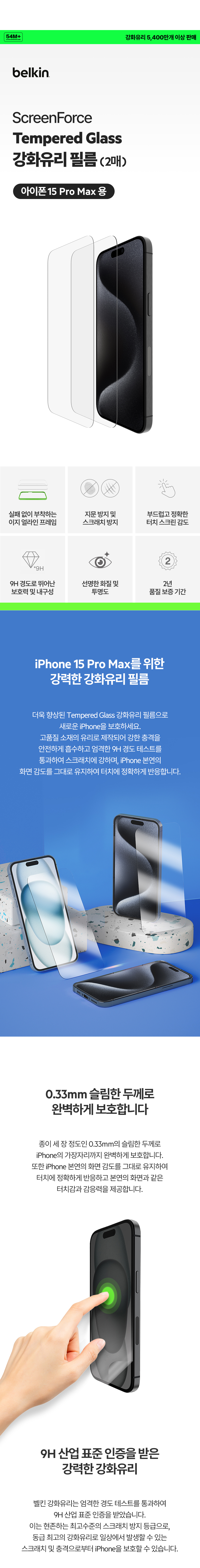 벨킨 아이폰15프로맥스 이지프레임 템퍼드 강화유리 필름 2매 OVA146zz