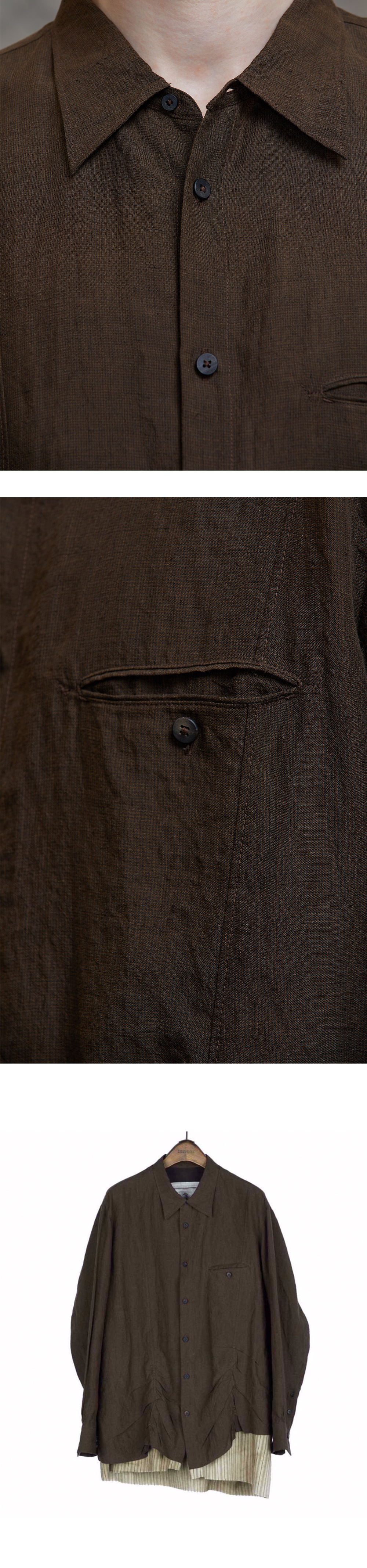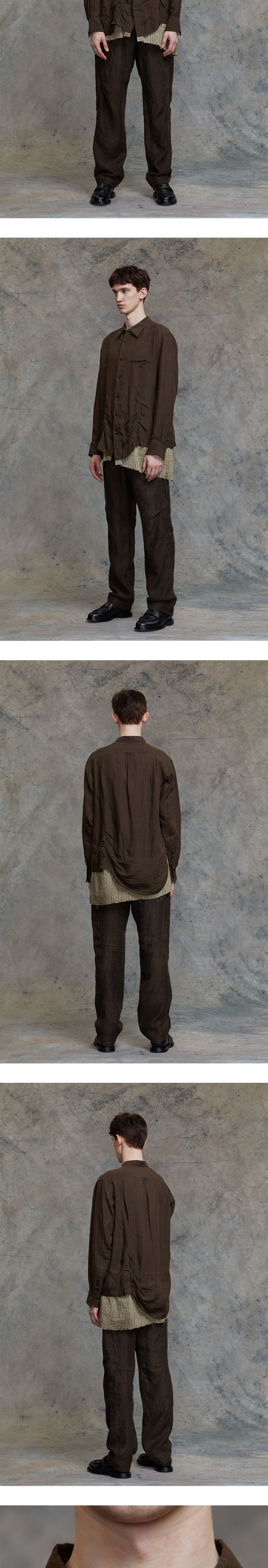 밑단 부분의 독특한 주름 효과와 지기첸만의 컬러가 특징인 레이어드 링클 이펙트 셔츠입니다. - 루즈핏 - 엉덩이 아래 길이 - 버튼 클로저 - 가슴 주머니 1개 - 왼쪽 밑단에 쌓인 효과 - 밑단에 스트라이프 셔츠 원단 디테일로 레이어드한 느낌을 연출 *모델 신체 스펙 : 187cm / 착용 사이즈 : 48