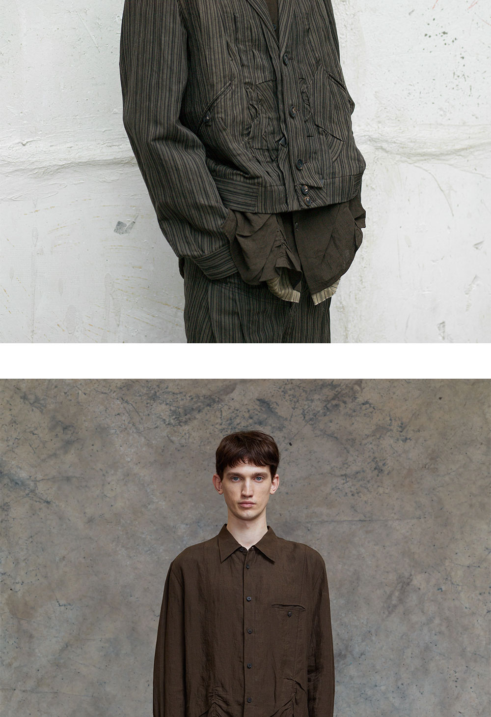 지기첸 레이어드 링클 이펙트 셔츠 브라운