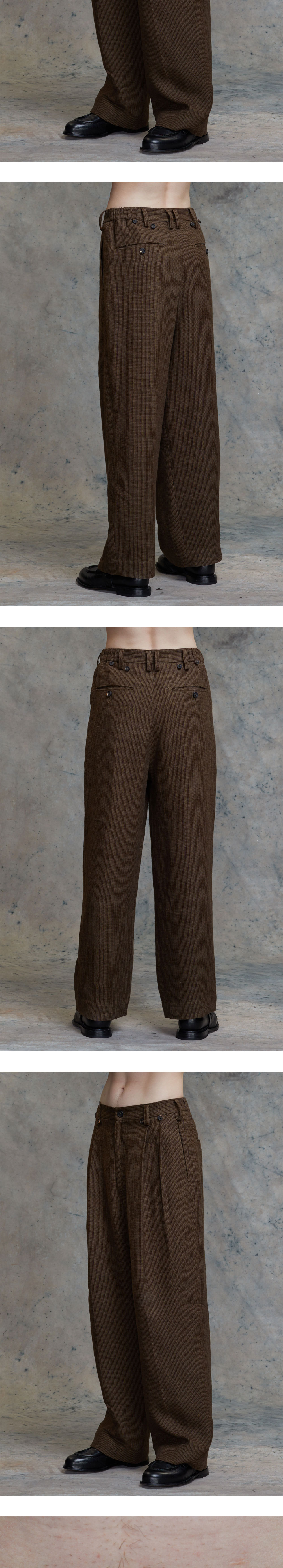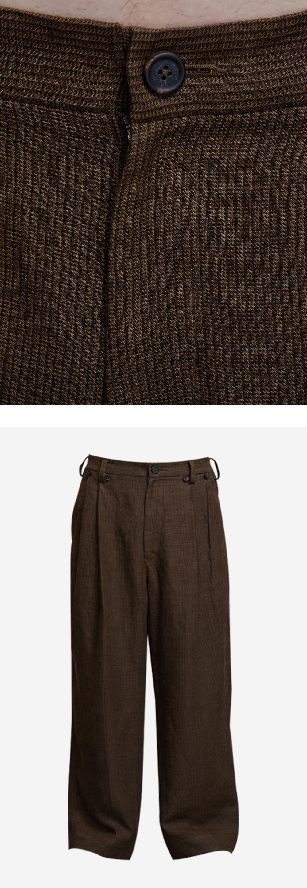 지기첸 프론트 플리츠 와이드 레그 롱 트라우저 브라운
