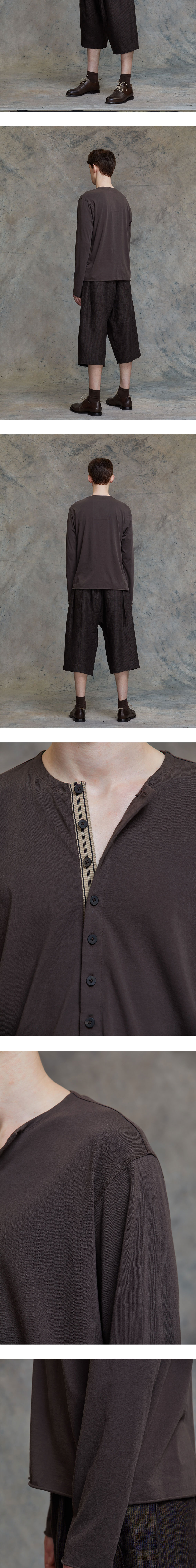 특유의 색감과 프론트 버튼 클로저가 특징인 지기첸의 헨리 넥 롱슬리브 티셔츠를 소개합니다. - 루즈 핏 - 엉덩이 아래 길이 - 프론트 버튼 클로저 - 라운드 넥 - 사이드 슬릿 *모델 신체 스펙 : 187cm / 착용 사이즈 : 48