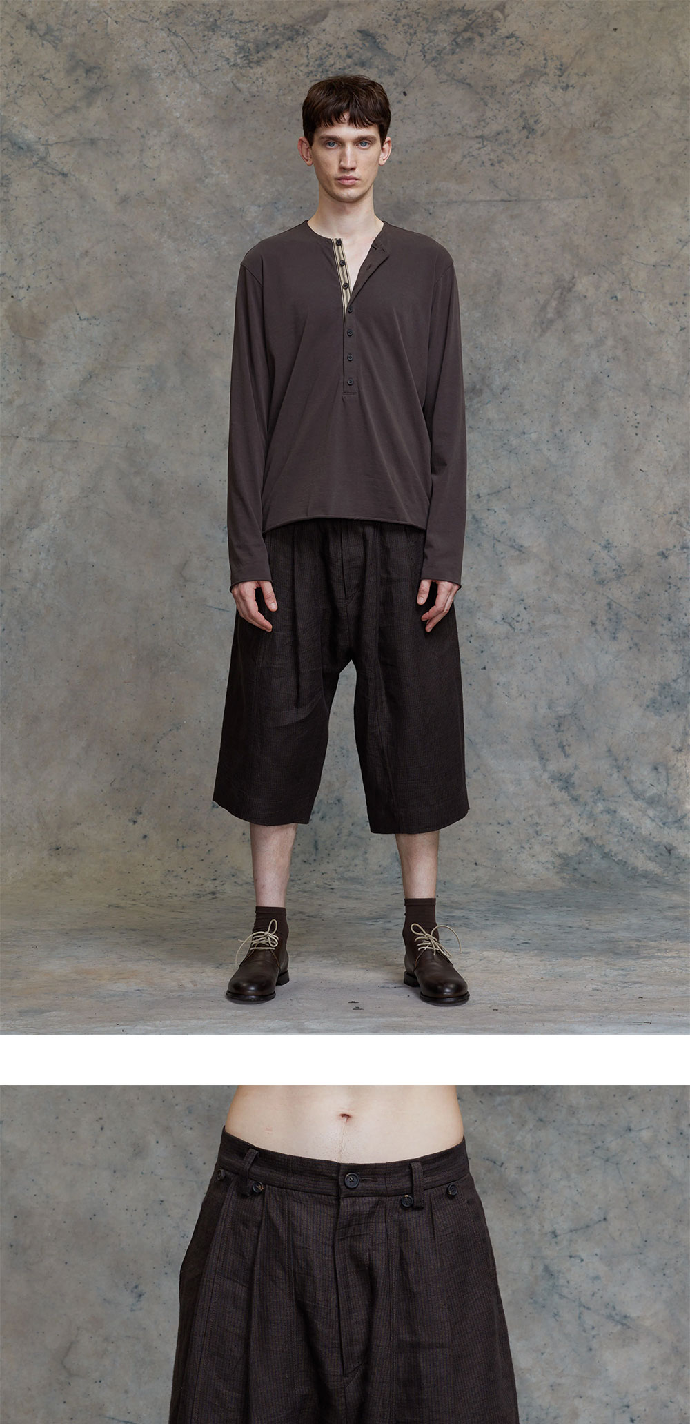 무릎 아래로 내려오는 길이의 여유로운 핏이 특징인 지기첸의 플리츠 버킷 쇼츠를 소개합니다. - 루즈 핏 - 무릎 아래 길이 - 부분 엘라스틱 허리 밴드 - 프론트 플리츠, 백 플리츠 *모델 신체 스펙 : 187cm / 착용 사이즈 : 48