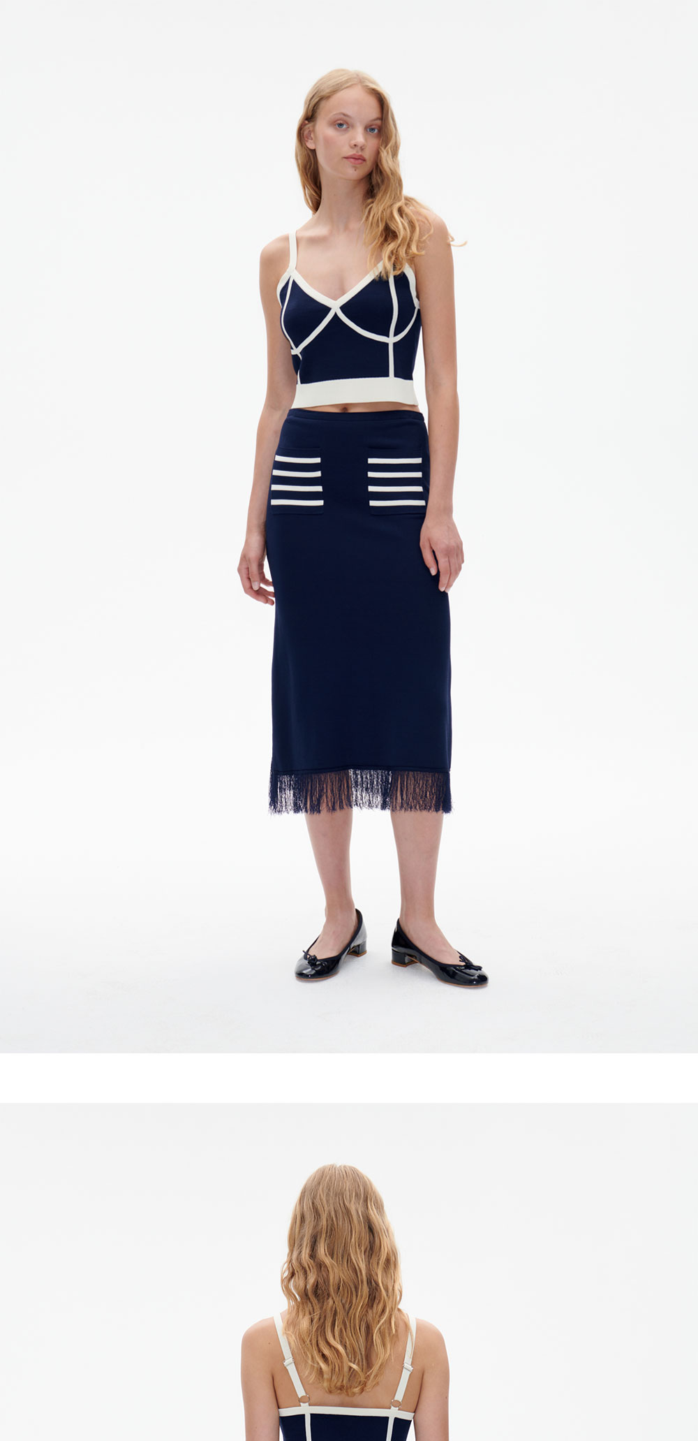 바움 운드 페르드가르텐의 사이프레 크롭 탑은 조절이 가능한 얇은 스트랩과 밑단의 립 니트가 특징입니다. - 핏한 사이즈 - 신축성 있는 소재 * 모델 신체 스펙 177cm / 착용 사이즈 S