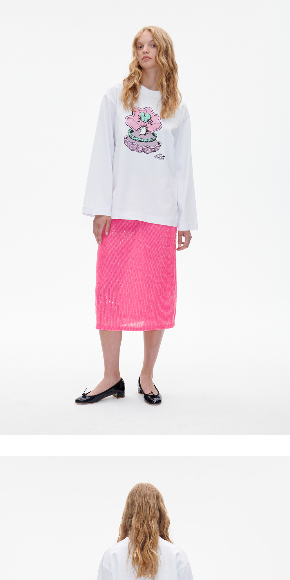 바움 운드 페르드가르텐의 이바나 롱 슬리브 티셔츠는 전면의 그래픽이 특징입니다. - 루즈 핏 - 크루넥 * 모델 신체 스펙 177cm / 착용 사이즈 S