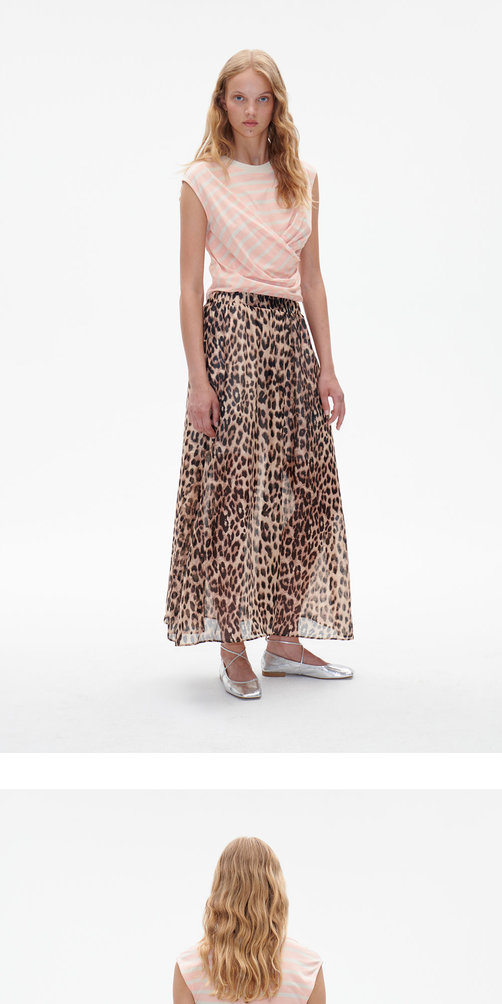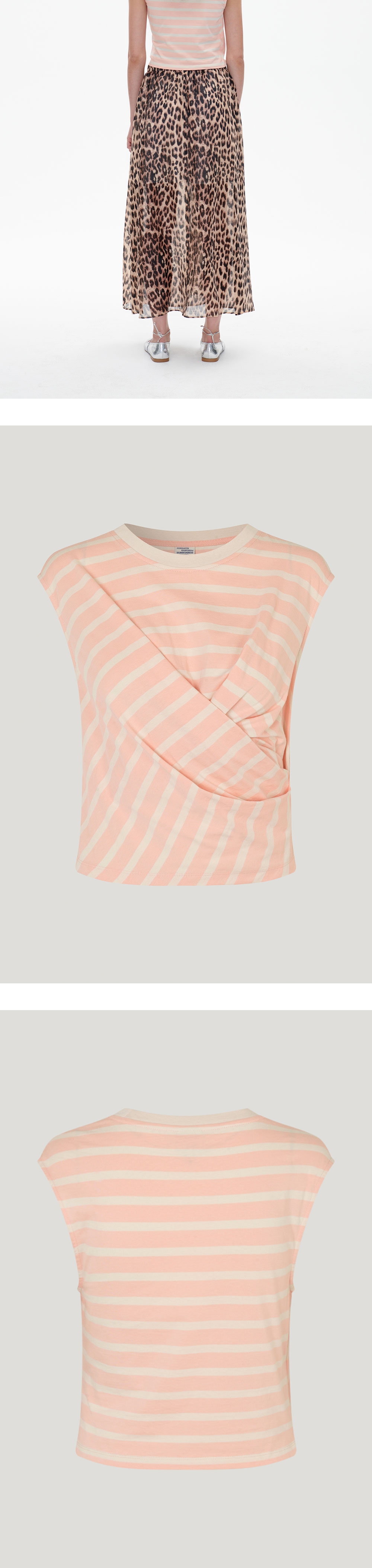 바움 운드 페르드가르텐의 잘리야 슬리브리스 탑은 유려하게 떨어지는 앞 부분의 드레이핑이 특징입니다. - 핏한 사이즈 * 모델 신체 스펙 177cm / 착용 사이즈 S