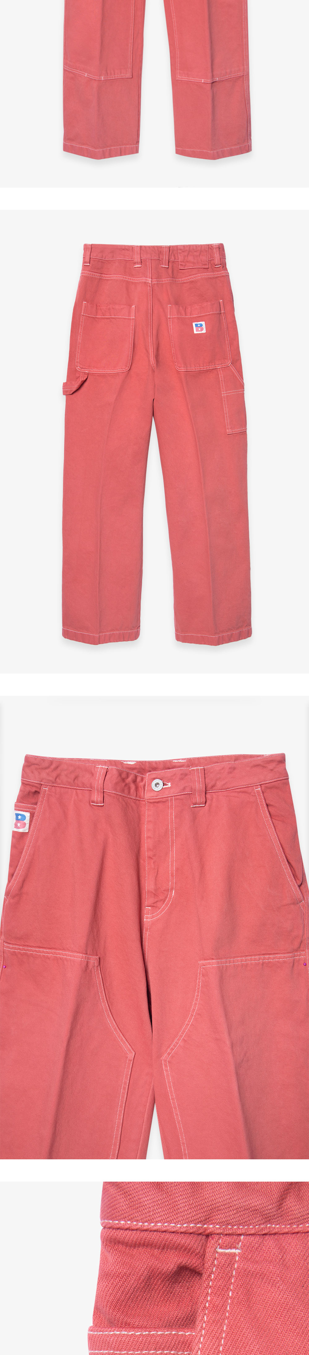 CARPENTER DENIM은 탄탄한 내구성을 느낄 수 있는 코튼 원단으로 제작된 데님 팬츠입니다. 군더더기 없는 깔끔한 실루엣로 제작되었으며, 목수나 도장공이 작업을 위해 착용하였던 워크 팬츠를 모티브로 공구 포켓 혹은 망치를 걸 수 있는 루프 디테일을 담아냈습니다. 전후면 B 로고 자수 삽입과 팬츠와 대비되는 스티치 배색 컬러로 포인트를 주었습니다.