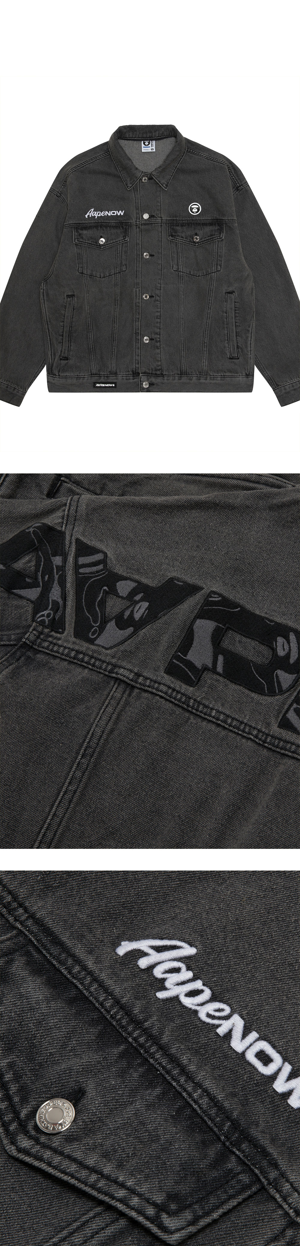 - 전면에 로고 패치 - 자수 디자인 - 버튼 여밈 - 가슴 플랩 포켓 2개 - 버튼 커프 소매