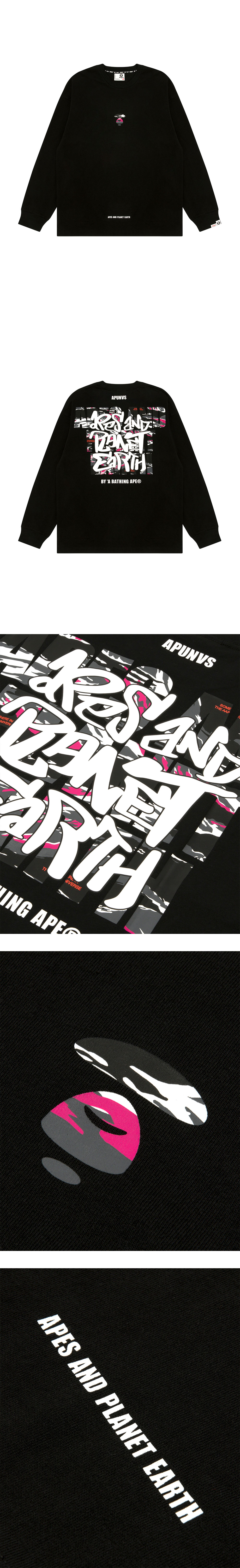 - 계절에 상관없이 오래 입을 수 있는 베이직 롱슬리브 티셔츠 - 전면의 AAPE 로고와 레터링 프린팅 - 후면의 AAPE 그래픽 프린팅