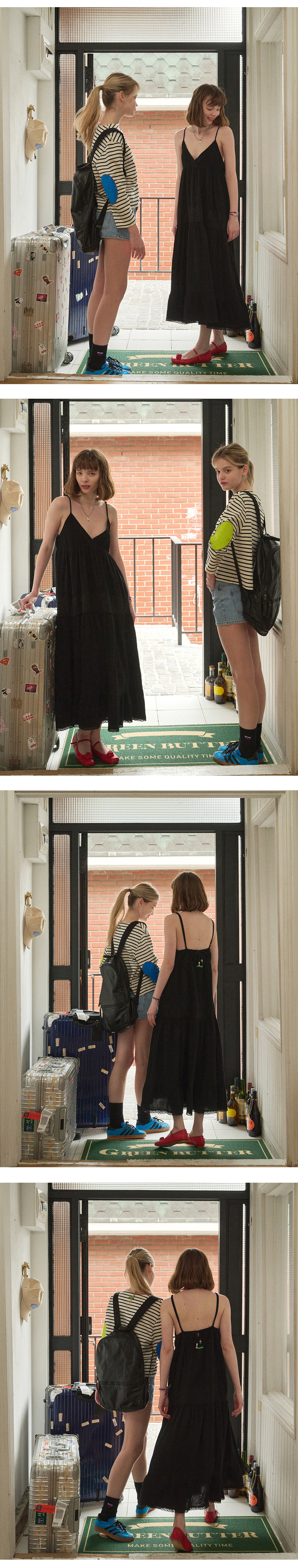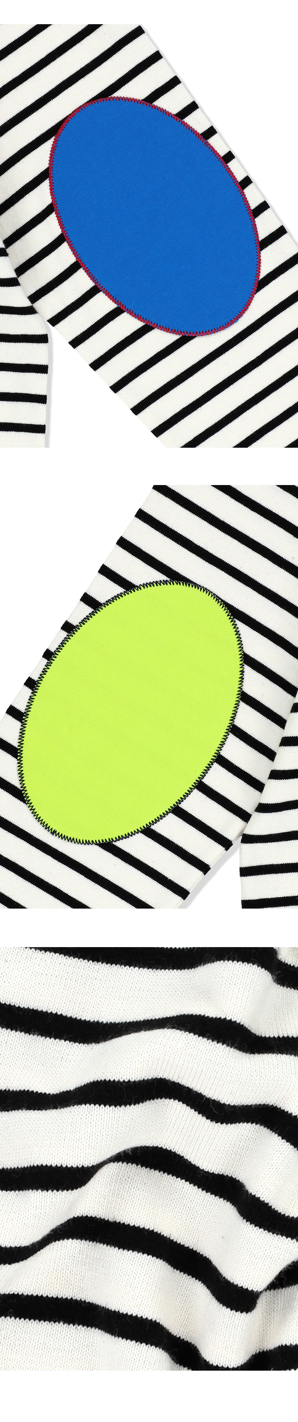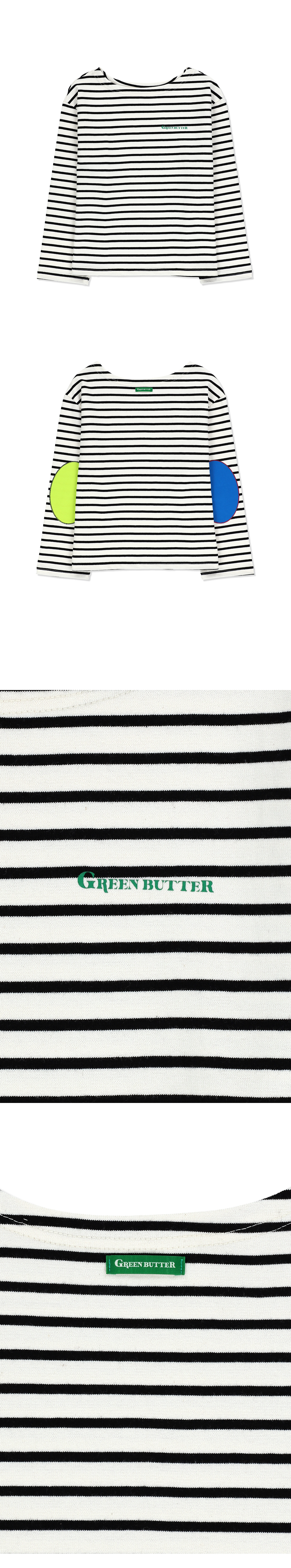 그린버터 보트 넥 컬러 패치 티 크림 블랙