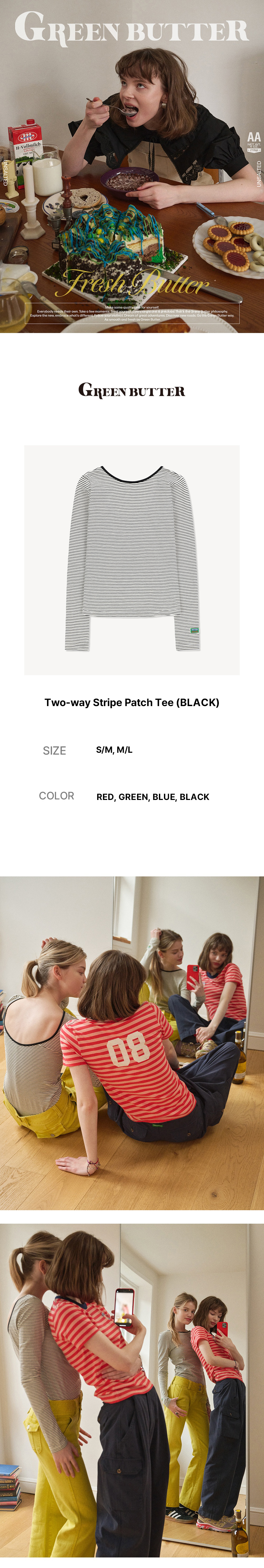 그린버터 투 웨이 스트라이프 패치 티 블랙