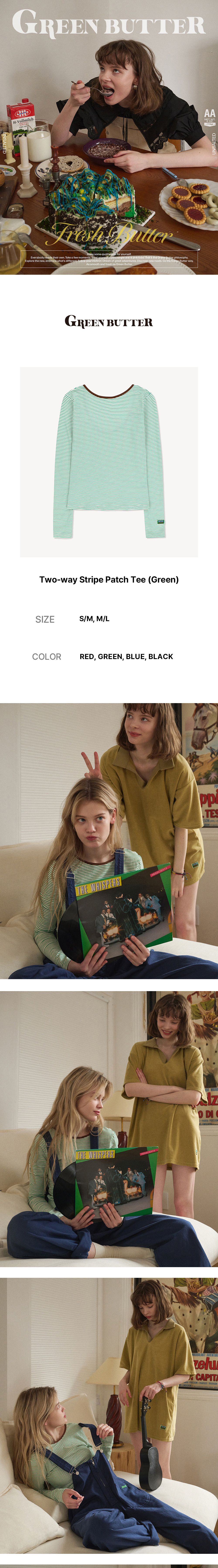그린버터 투 웨이 스트라이프 패치 티 그린