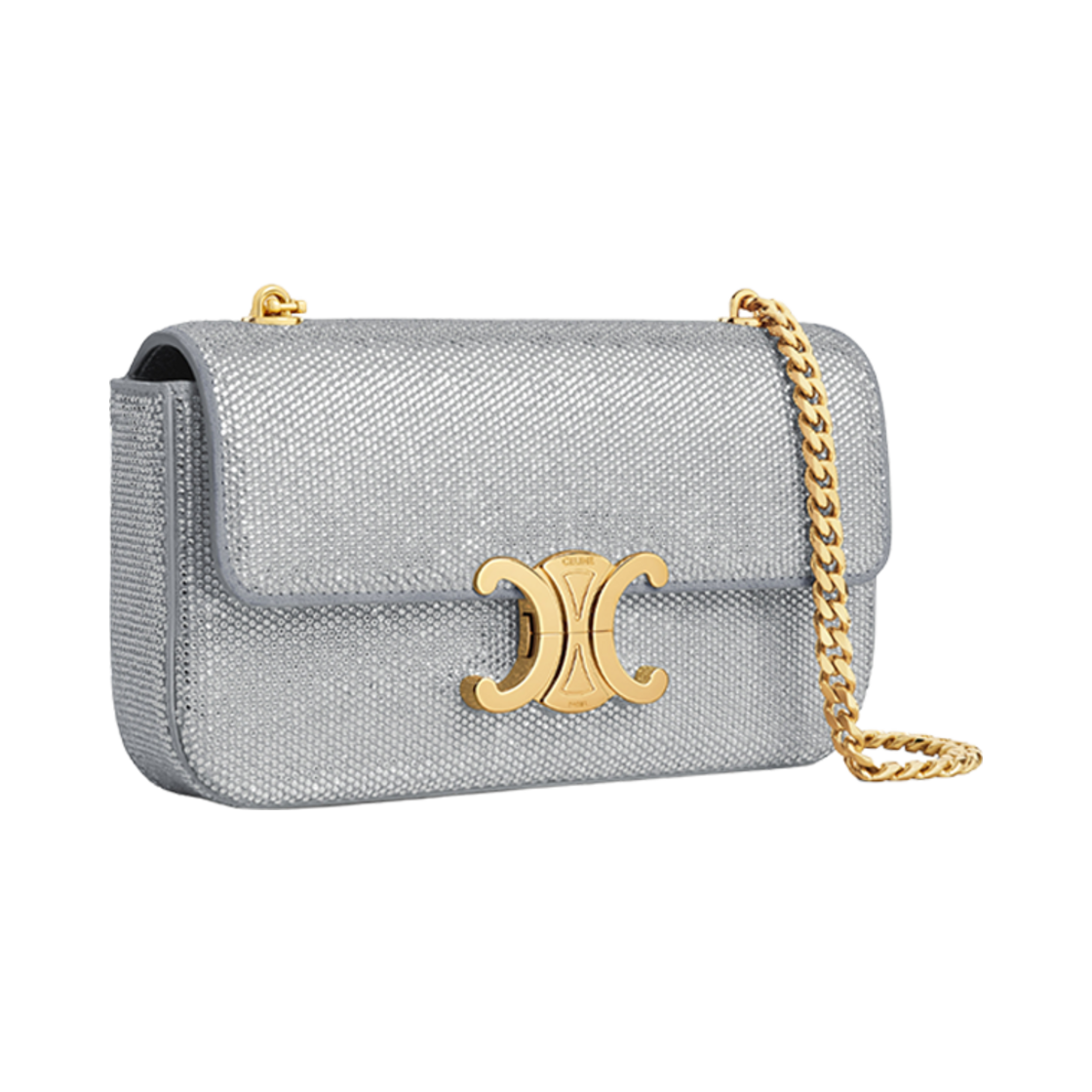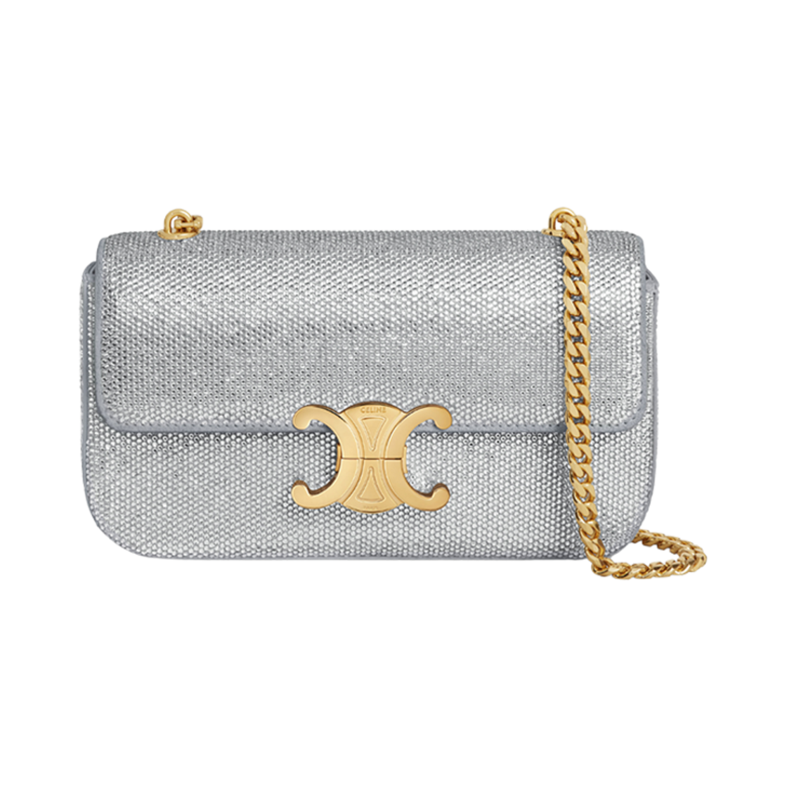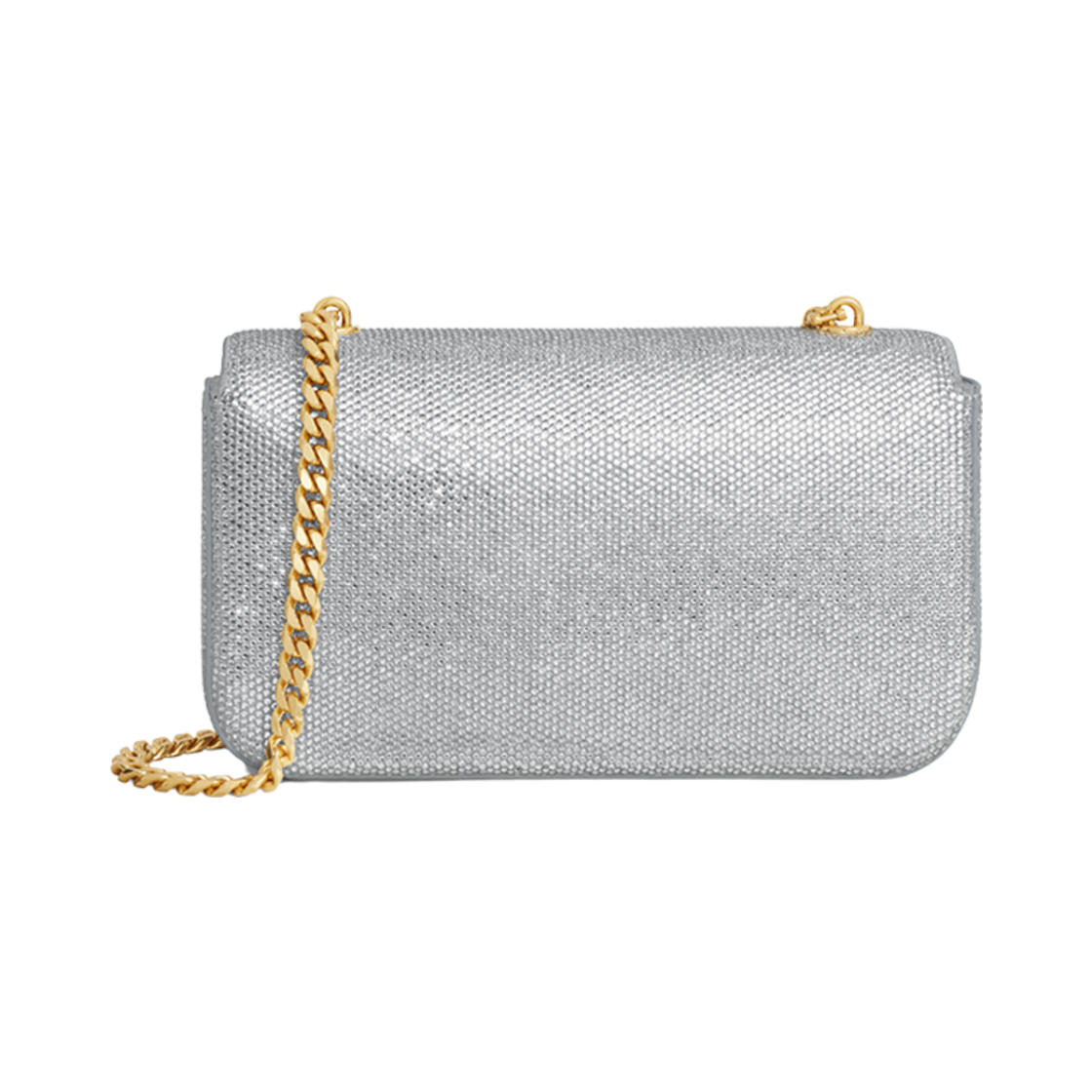 Celine Chain Shoulder Bag Claude in Suede Calfskin with Strass Silver