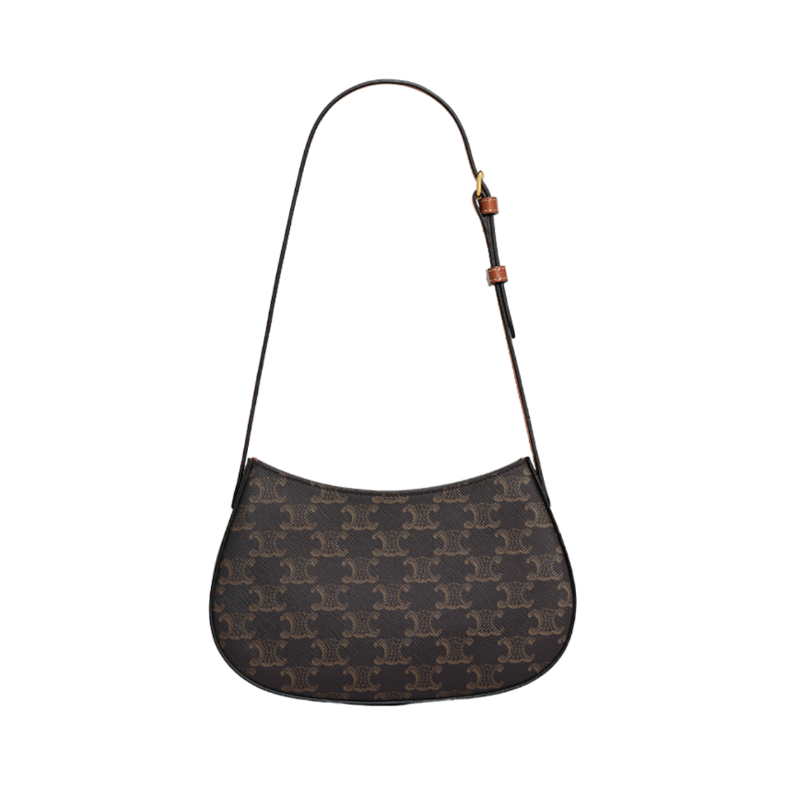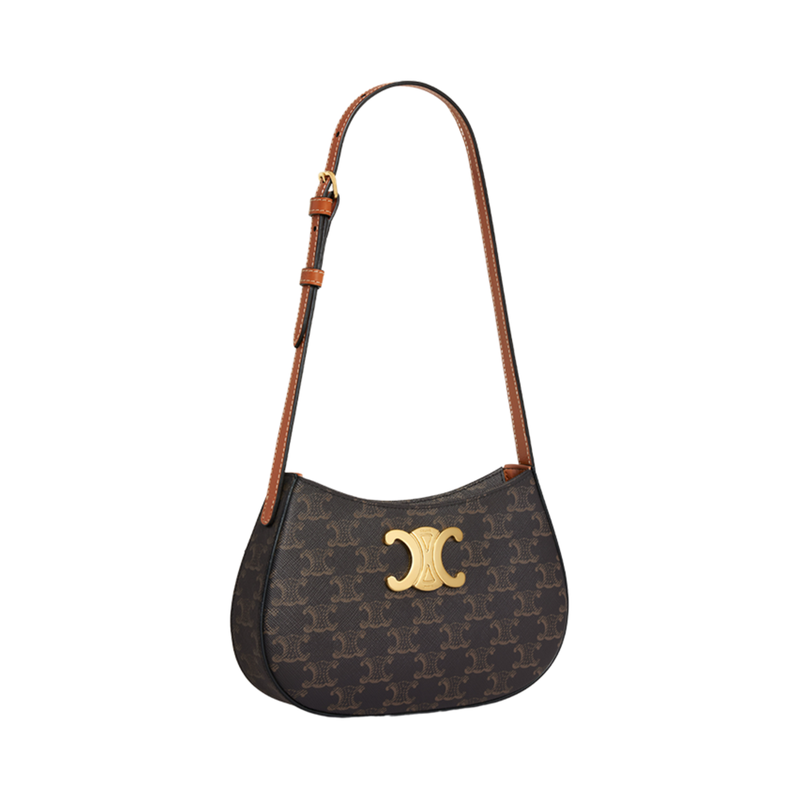 Celine Medium Tilly Bag in Triomphe Canvas Calfskin Tan