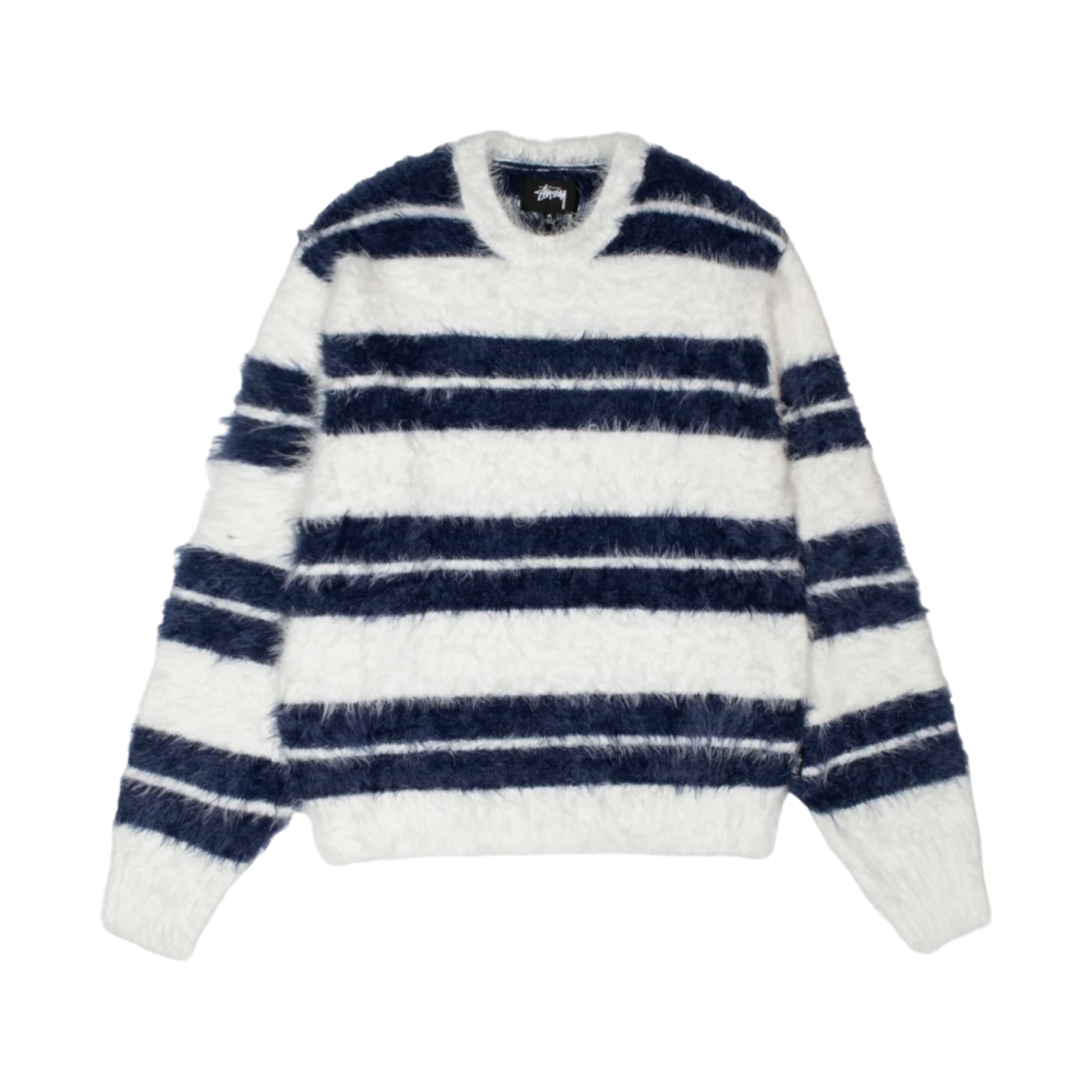 스투시 헤어리 스트라이프 크루 스웨터 아이보리 네이비