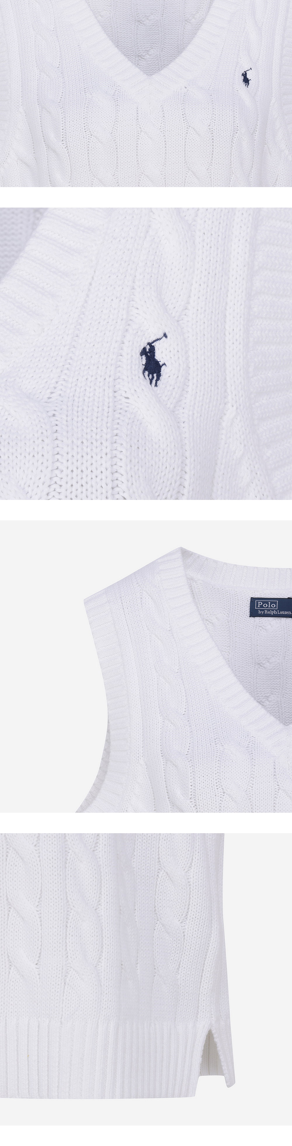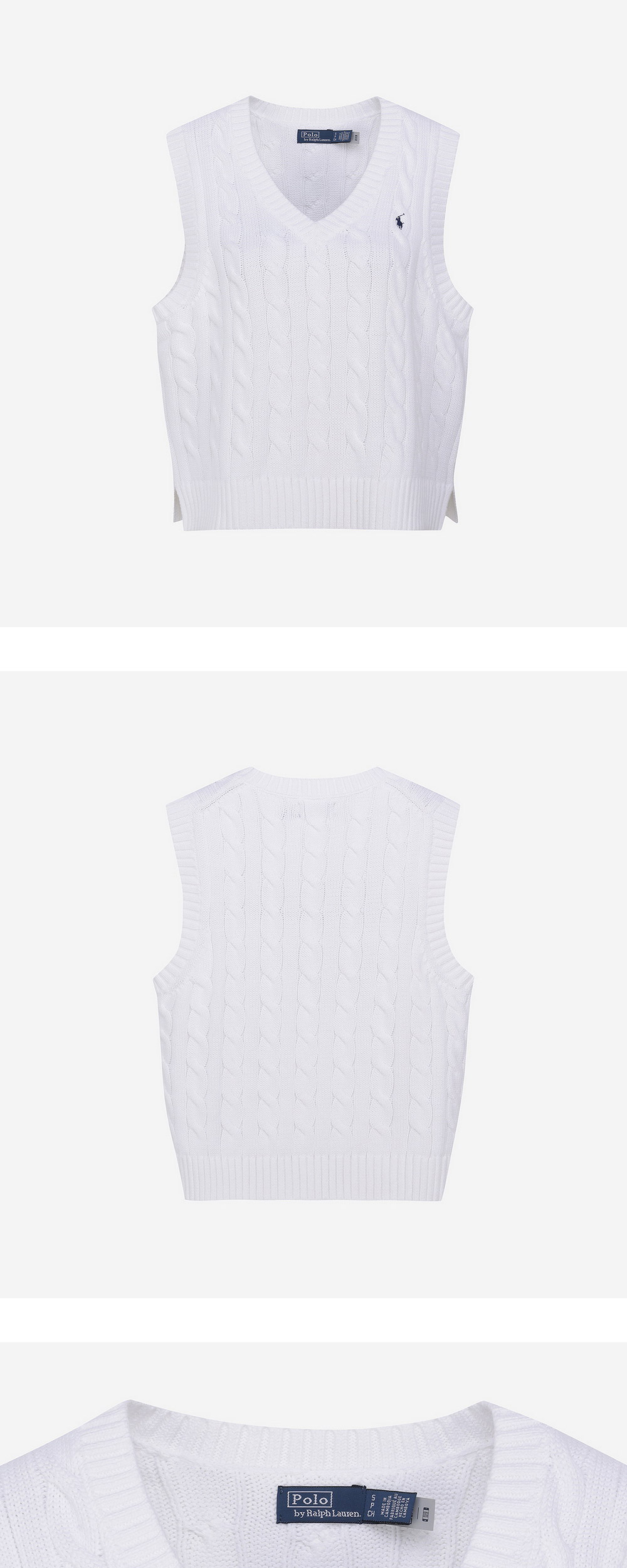 [30%적립] Polo Ralph Lauren Women Cable Knit Cotton V-Neck Sweater Vest White
