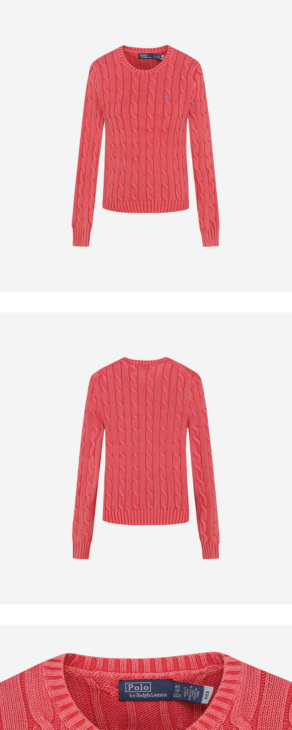 < KREAM은 랄프로렌 코리아 공식 파트너사로 모든 상품은 랄프로렌 코리아(유)에서 공급받은 정식 수입 제품입니다 > Polo 스타일링의 머스트해브 아이템인 슬림핏 크루넥 스웨터로, 통기성이 있는 코튼으로 제작되었으며 시그니처 케이블 니트 구조가 특징입니다. * 모델 신체 스펙 : 170cm / 착용 사이즈 : S