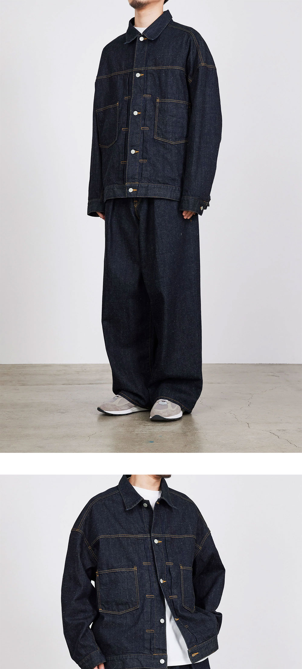 허리부터 밑단까지 일자로 떨어지는 볼륨감 있는 실루엣이 특징입니다. 중앙의 턱으로 인해 앞에서 보면 비교적 슬림한 실루엣으로 보이지만, 옆에서 보면 강한 볼륨을 느낄 수 있습니다.