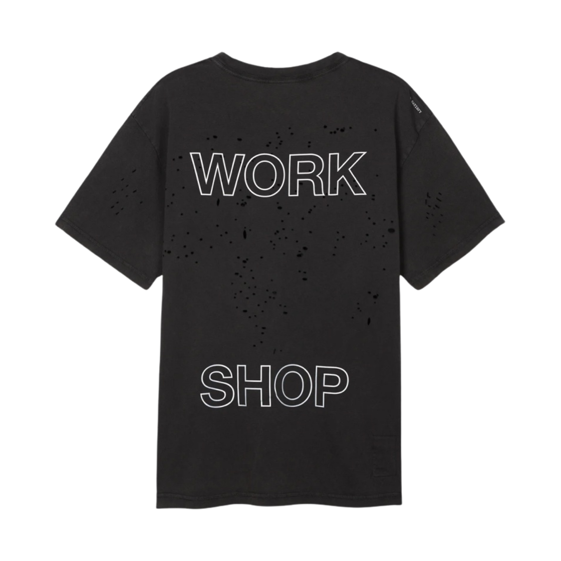 새티스파이 x 아워레가시 워크샵 모스테크 티셔츠 에이지드 블랙